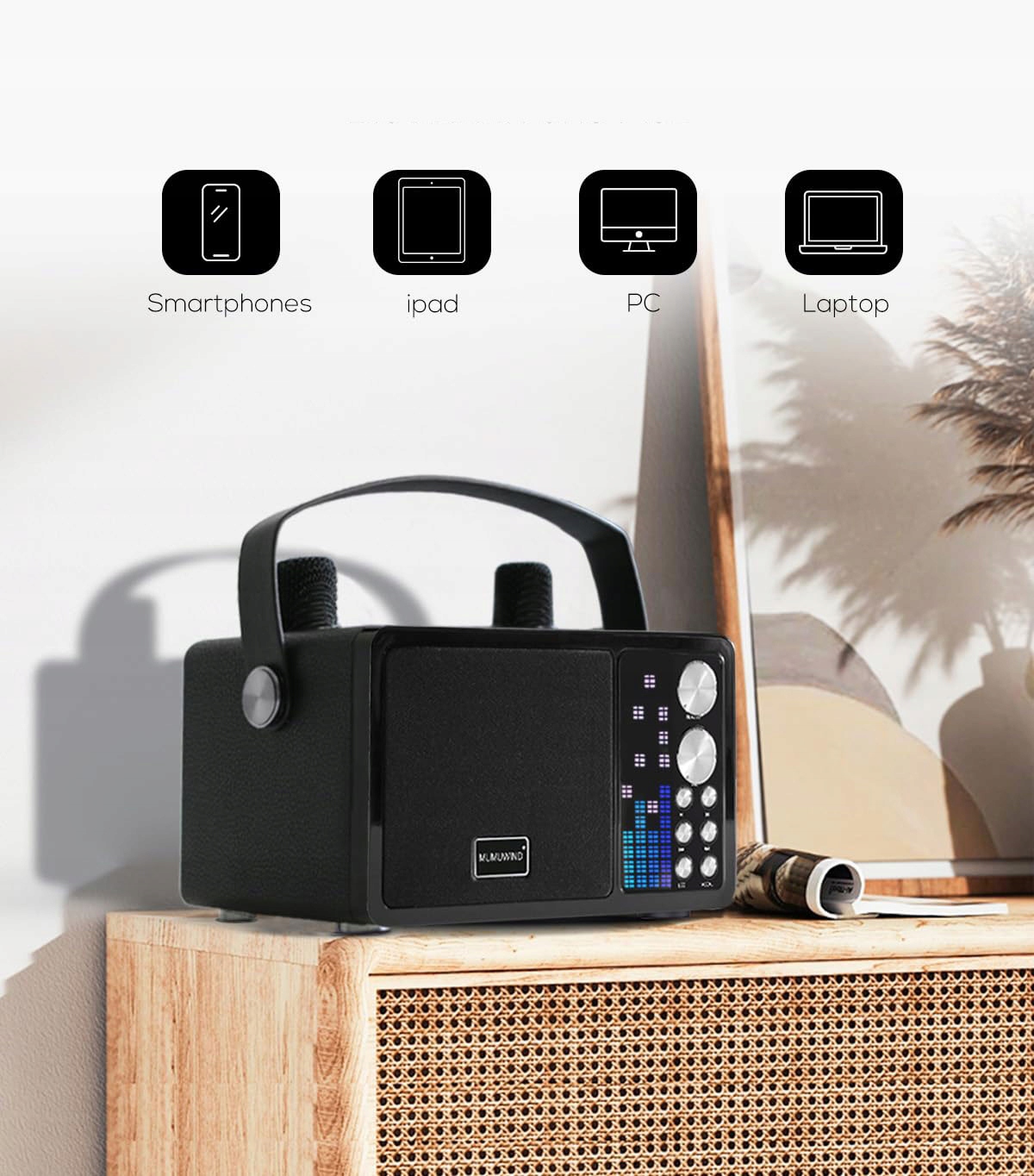 Портативный караоке Bluetooth Set для взрослых с функциональной транспортной ручкой и выделенными слотами для микрофонов, предназначенных для подвижности!
