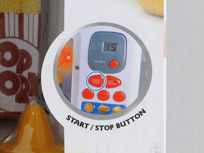 Интерактивная микроволновая печь будет идеальным дополнением для каждой детской кухни. Нажмите кнопку, чтобы открыть микроволновую печь и положить в нее курицу. Используйте переключатель, и освещенное блюдо действительно начнет вращаться, как реальное, и издает звуки настоящей микроволновой печи. Кроме того, найдена имитационная еда (гамбургер, хот -дог, попкорн, кусок курицы, кетчуп и горчица)
