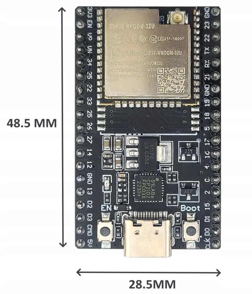 - РЧ-модуль: ESP-WROOM-32U Версия с внешней антенной (разъем u.FL / IPEX)