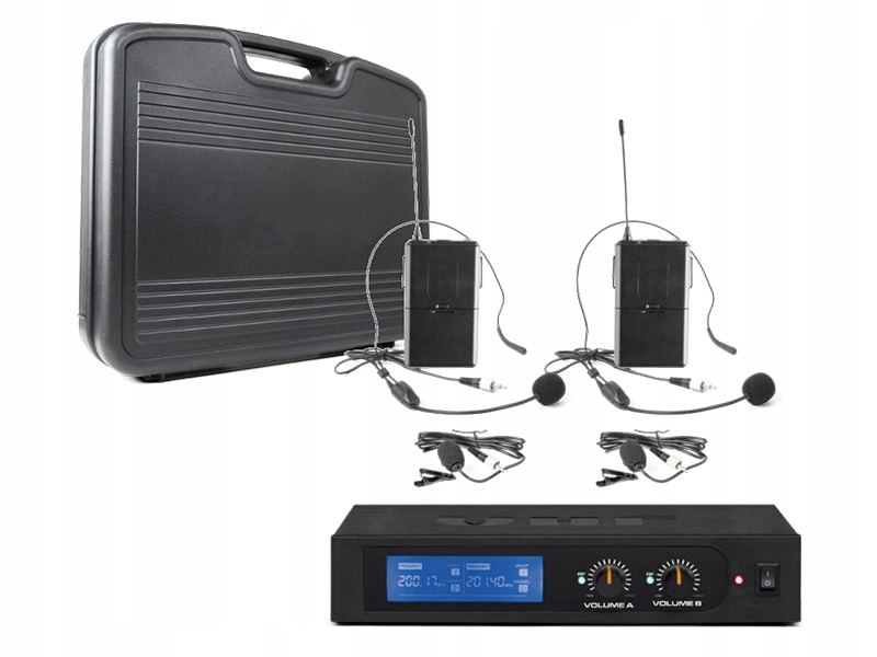 Набор микрофона с беспроводной передачей. Функции системы включают в себя два бодибилдера, двойную частотную структуру, высокое отношение сигнала к шуму и многое другое. Это отличное микрофонное устройство подходит для речи, караоке, спортивных уроков, встреч, апелляций и крупных мероприятий. Включает в себя: 2 -кратный микрофон головки и 2 -кратный канал микрофон, 2x BodyPack, работающий на различных частотах VHF, двойной приемник, дисплей, 6,3 мм. Технические данные: Частота: 200,175 МГц / 201,400 МГц, полоса передачи: 40 Гц -20 кГц, 2x батарея AA, источник питания: 240VAC / 50 Гц, размеры: приемник - 160 x 210 x 40 мм, кузов - 115 x 65 x 20 мм, вес: приемник - 900 g, кузов - 200 мм.