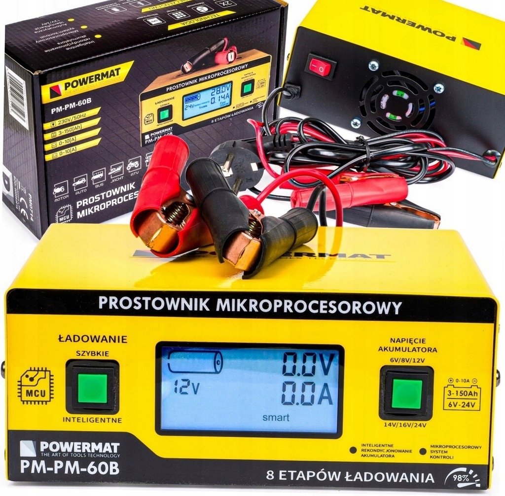 Выпрямитель PM-PM-60B от Powermat — первое на рынке зарядное устройство с микропроцессорной системой управления по технологии ШИМ с возможностью зарядки аккумуляторов до 24В и возможностью выбора нестандартных типов напряжения аккумуляторов, что позволит разумно и целенаправленно подобрать подходящие параметры, гарантируя восстановление вашего разряженного и запущенного аккумулятора.