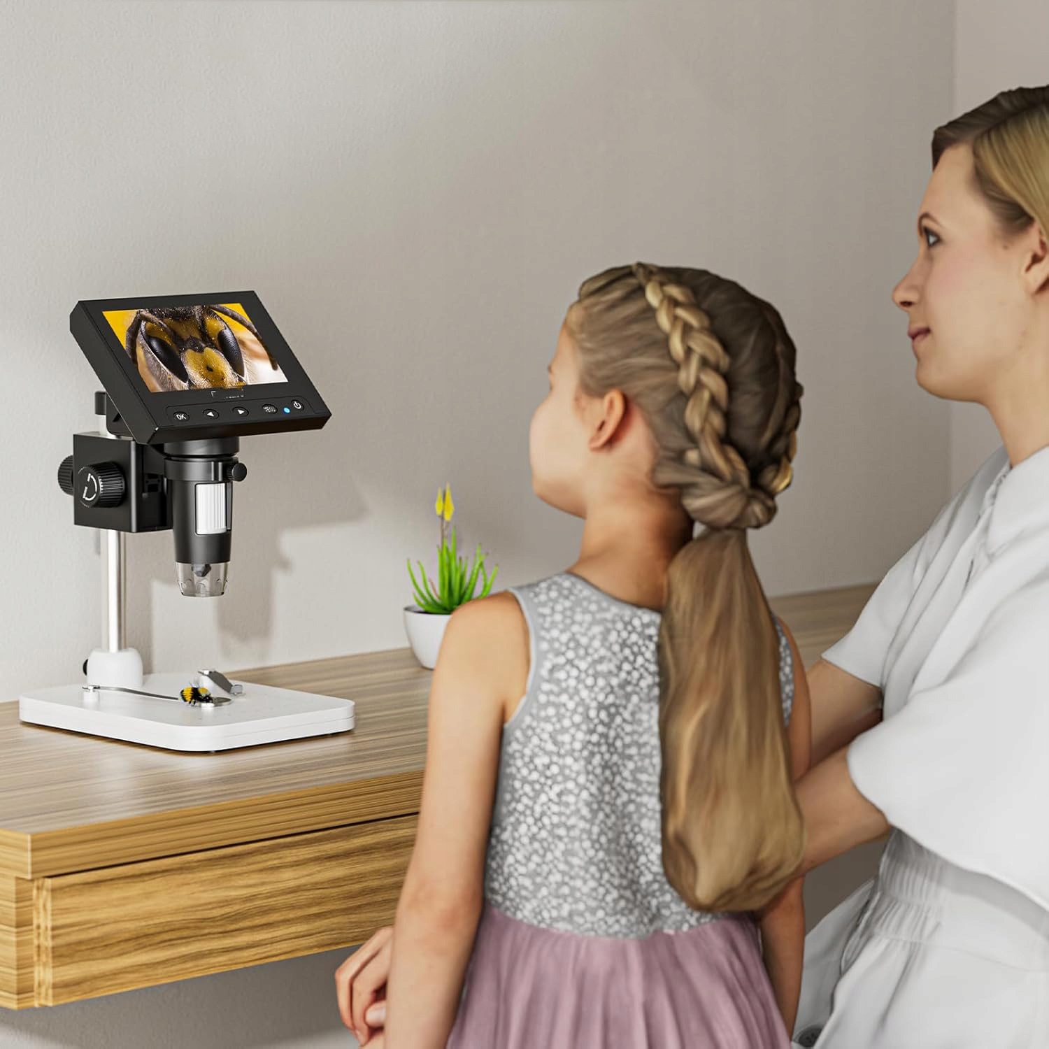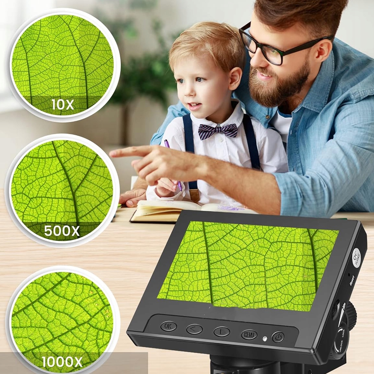 МИКРОСКОП С 4,3-ДЮЙМОВЫМ ДИСПЛЕЕМ, 8 РЕГУЛИРУЕМЫМИ СВЕТОДИОДНЫМИ ПОДСВЕТКАМИ, 1000-кратным УВЕЛИЧЕНИЕМ, ЗАРЯДКА