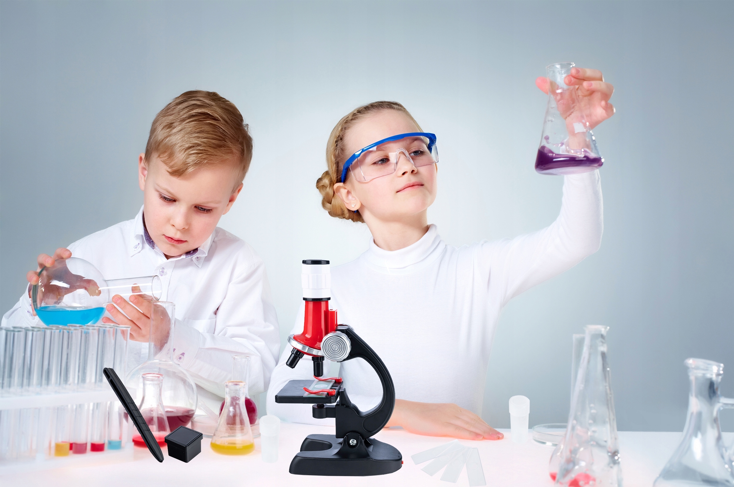 УЧЕБНО-НАУЧНЫЙ МИКРОСКОП ДЛЯ ДЕТЕЙ - УВЕЛИЧЕНИЕ 100x/400x/1200x - СО СВЕТОДИОДНОЙ ПОДСВЕТКОЙ, НА АККУМУЛЯТОРЕ + АКСЕССУАРЫ