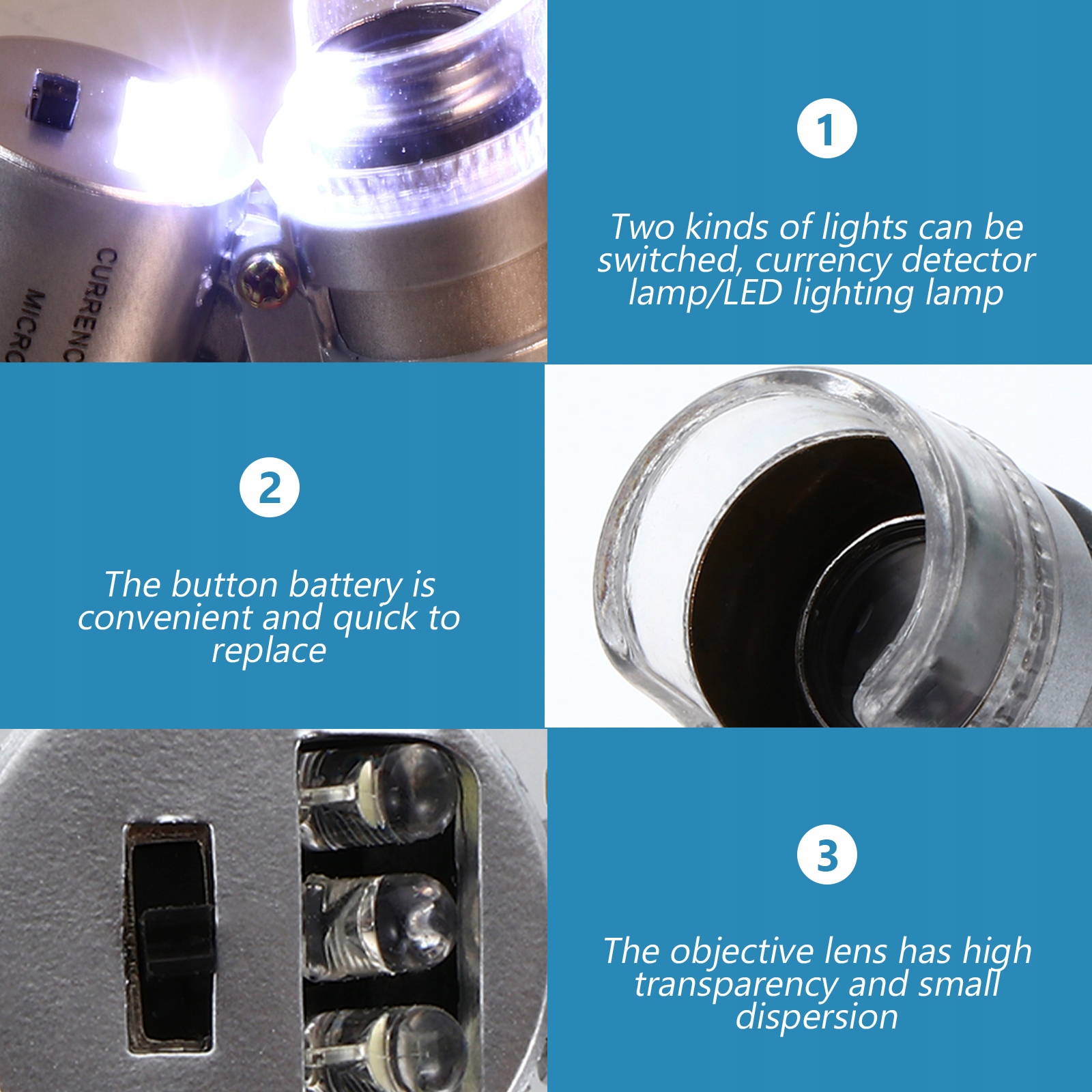 ✅ Вы можете переключить два типа света: лампа для обнаружения валюты/светодиодной лампы освещения.