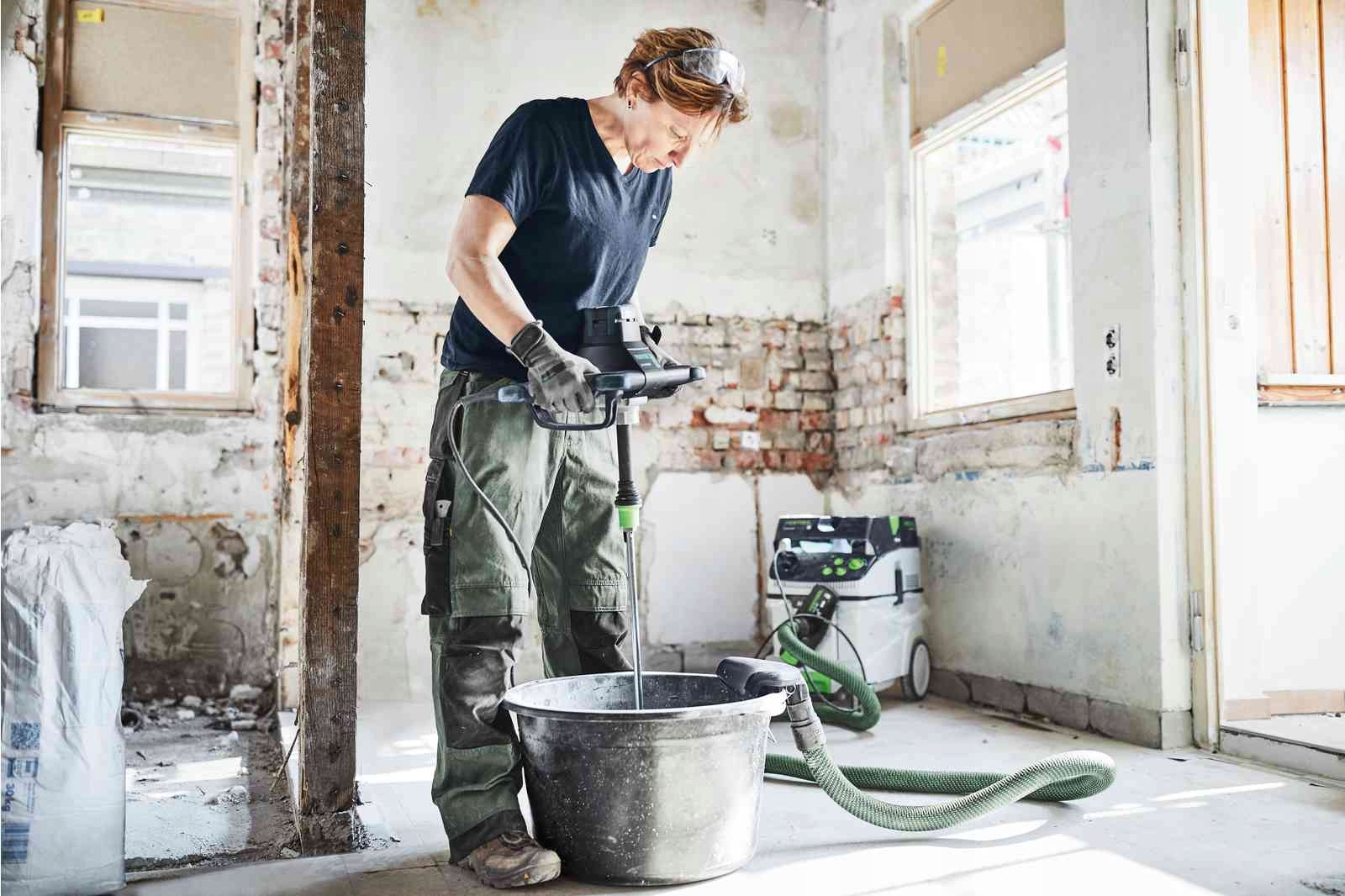 Насадка MX-A легко крепится к краю ведра. Благодаря этому пыль исчезает в пылесосе во время заливки материала. Вам также не придется иметь дело с густыми облаками пыли во время смешивания. А после завершения работ строительная площадка чистая и не требует дополнительной уборки.