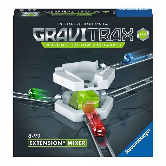 Измените направление шариков с помощью миксера. Добавьте в игру элемент неожиданности и разнообразия, бросая в миксер до трех шариков и наблюдая, куда они попадут на дорожку! Этот комплект является идеальным аксессуаром для расширения стартового набора GraviTrax Pro.