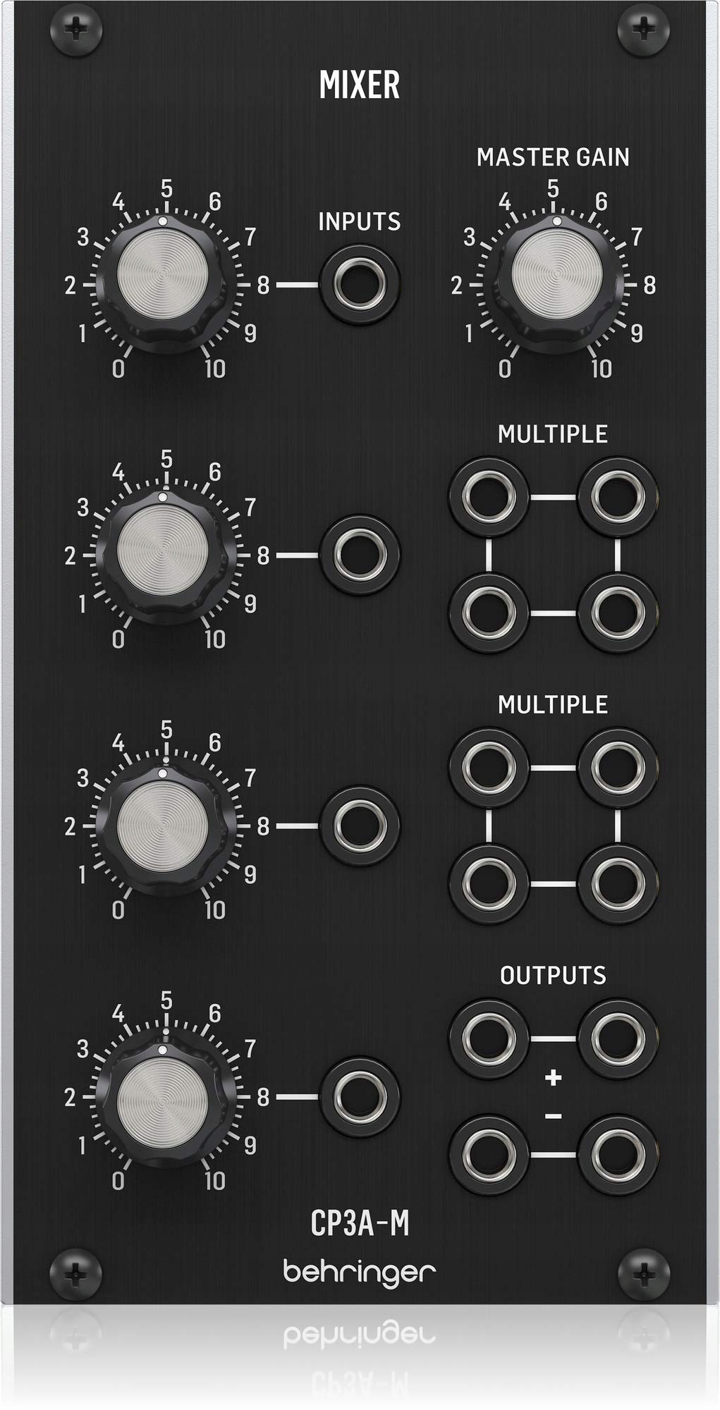 Behringer CP3A-M MIXER — это аутентичная копия переключателей серий Modular 55, 35 и 15, обеспечивающая винтажный звук 1970-х годов. Этот инструмент используется многими артистами по всему миру, создающими поп, рок и музыку. джазовая музыка.