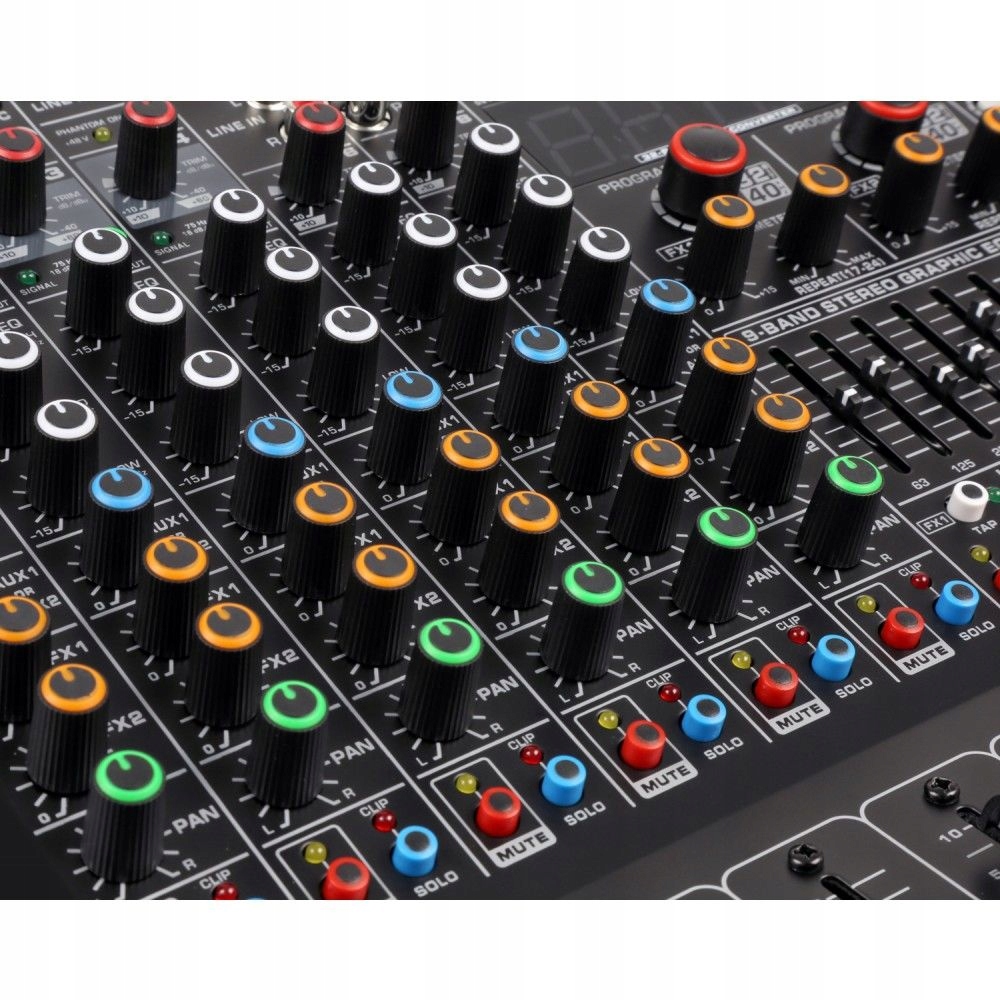 Сценический мощный микшер со встроенным усилителем и множеством привлекательных функций. Микшер имеет 4 балансных комбинированных входа Jack/XLR, 2 балансных стереовхода диаметром 6,3 мм, мощность 2x350 Вт. Два установленных на плате процессора Multi FX имеют по 99 пресетов каждый. Кроме того, в устройстве имеется USB и 9-полосный эквалайзер. Powermixer имеет встроенный USB-плеер с цифровым дисплеем и Bluetooth-приемник.