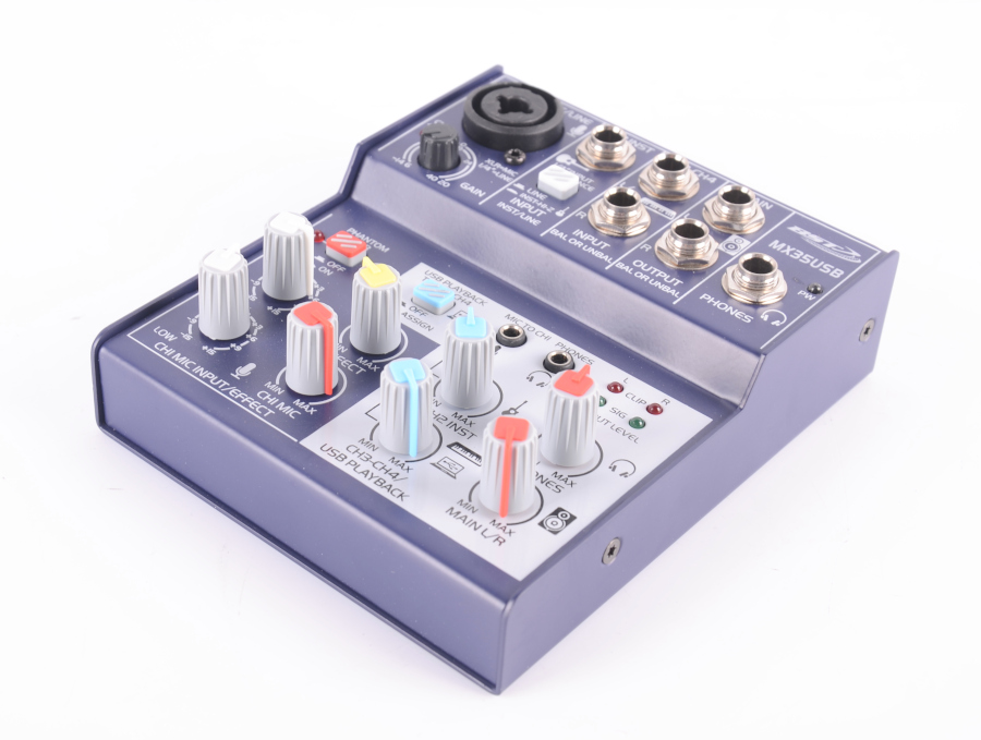 — идеальное предложение для всех мобильных диджеев, артистов и музыкантов. Для такого компактного устройства оно имеет ряд переключателей управления и полезных функций. 4-канальный микшер с 2-полосным эквалайзером имеет вход для наушников и микрофона, а также входы для гарнитуры с микрофоном и, самое главное, оснащен разъемом USB 2.0, поэтому мы можем легко подключить, например, ноутбук. к этому. Также имеется фантомный переключатель +48 для конденсаторных микрофонов с возможностью такого питания.