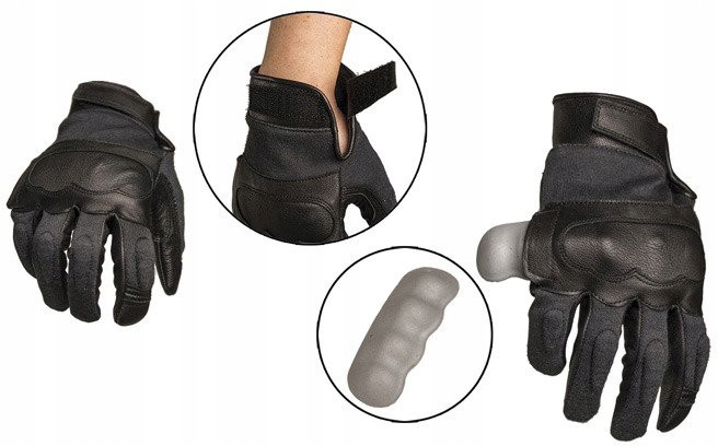 Благодаря использованию полиарамидной ткани Kevlar® DuPont™ перчатки обладают повышенной устойчивостью к порезам и другим видам повреждений. Использование козьей кожи на внутренней стороне обеспечивает хорошее ощущение предметов, что облегчает использование, например, манипуляторов для оружия.