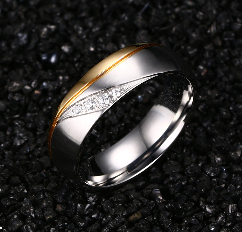 ОБРУЧАЛЬНЫЕ КОЛЬЦА С СЕРЕБРОМ И ЗОЛОТОМ С ЦИРКОНИЕМ, СТАЛЬ 316L (ПАРА)