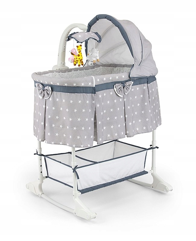 Многие родители оценили тот факт, что колыбель Sweet Melody обладает множеством удобств, привлекательных для детей и родителей. Большим ее преимуществом является то, что это многофункциональное изделие, его можно использовать как удобную кровать или традиционную колыбельку. У него есть колеса, благодаря которым мы можем свободно перемещать его в любое место дома или сада; В комплект входит москитная сетка, которая защитит ребенка от насекомых. Мобильность люльки дает большой комфорт, ведь ребенок всегда будет рядом со своими родителями. Имеет нижнюю корзину, что позволит хранить необходимые вещи рядом с ребенком и вовремя реагировать на его потребности, не отходя от него слишком далеко. Что очень важно, чехол люльки изготовлен из приятного на ощупь и дышащего материала, который можно стирать, поэтому освежить люльку можно в любой момент. В нем есть карусель с красочными животными и мелодиями. Эти функции привлекают внимание малыша, а музыка поможет малышу успокоиться и успокоиться. Люлька имеет опускаемую боковую стенку, что в сочетании со встроенным в карусель светильником обеспечит большой комфорт при повседневном, а зачастую и ночном уходе за ребенком. Для удобства родителей эти функции управляются с помощью пульта дистанционного управления. Опционально имеется специальный карман для аксессуаров. Еще одним преимуществом является регулируемая высота на разных уровнях, что позволяет родителям легче уложить ребенка спать и обеспечить безопасность ребенка.