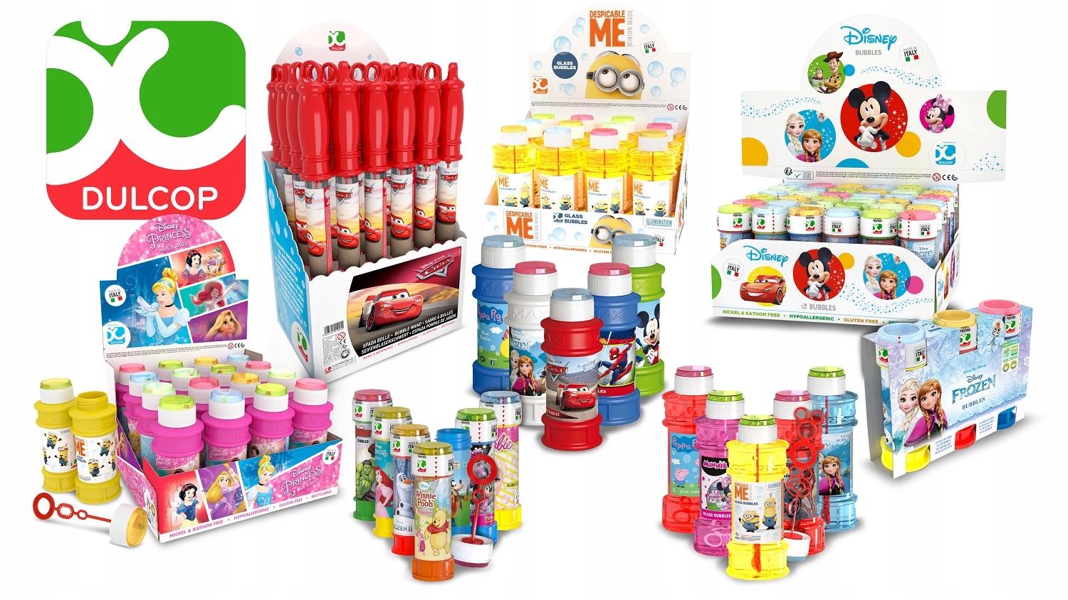 Мыльные пузыри Dulcop бывают разных цветов, с изображениями героев любимых сказок. Среди них вы сможете найти: Барби, Блюи, Свинку Пеппу, Щенячий патруль, Микки Мауса, Холодное сердце и многих-многих других. Ознакомьтесь с полным предложением пузырей в нашем магазине!