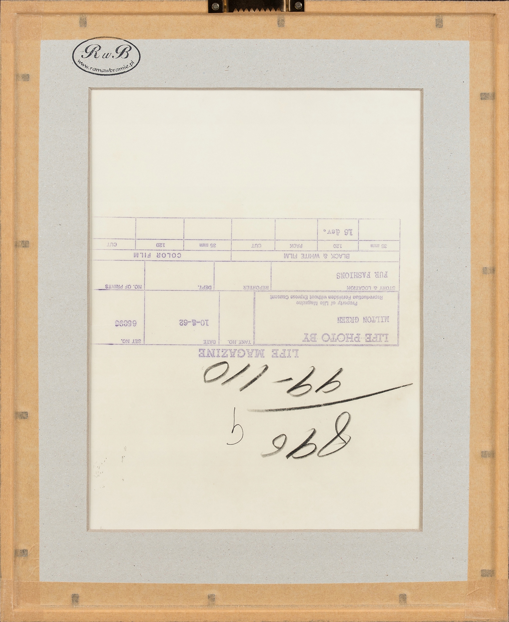 Техника: Черно -белая фотография (винтажная печать) . На обороте оригинальная печать, подтверждающая авторство фотографии и ее происхождение из архива «жизни».