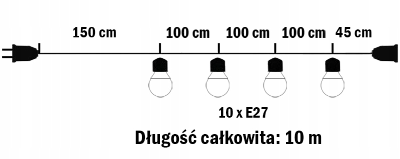 - 10-метровая гирлянда с расположением патронов со 100 см.