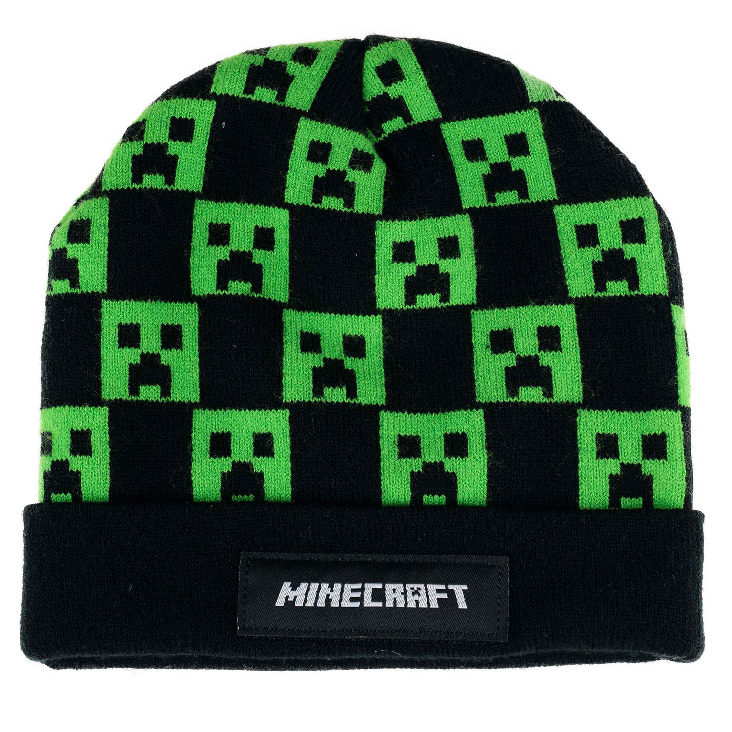 Черная зимняя шляпа Minecraft с зеленым коллажем Creeper.