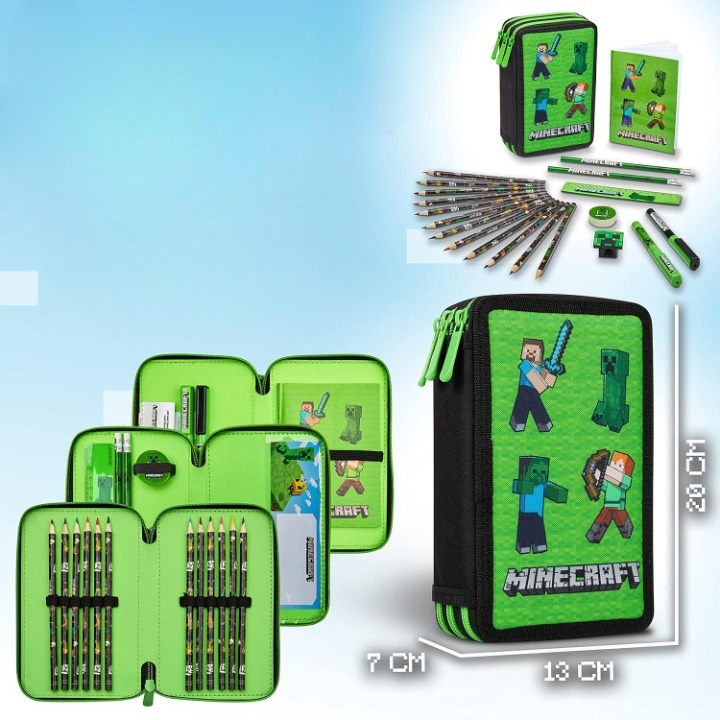 ✔️ Этот Школьный пенал Minecraft с тремя отделениями и полным набором школьных принадлежностей идеально подходит для всех поклонников Minecraft.