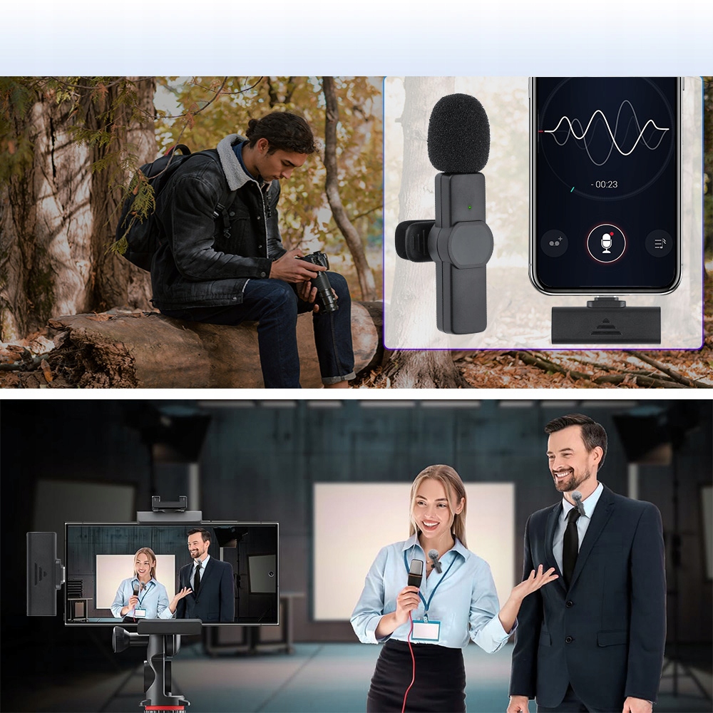 🎤🎤🎤 Совместим с iPhone/Android/PC/ноутбук: набор беспроводных микрофона совместим с iPhone, Android и ПК. Он оснащен двумя передатчиками и одним приемником, который обеспечивает гибкость использования. Один интерфейс предназначен для iPhone, а другой может быть подключен к ПК или ноутбуку. Это удобно и легко настроить. Это отличный инструмент для записи конференций, видеозаписи, онлайн -курсов, интервью, живой передачи, видеоблогов и других необходимых событий.