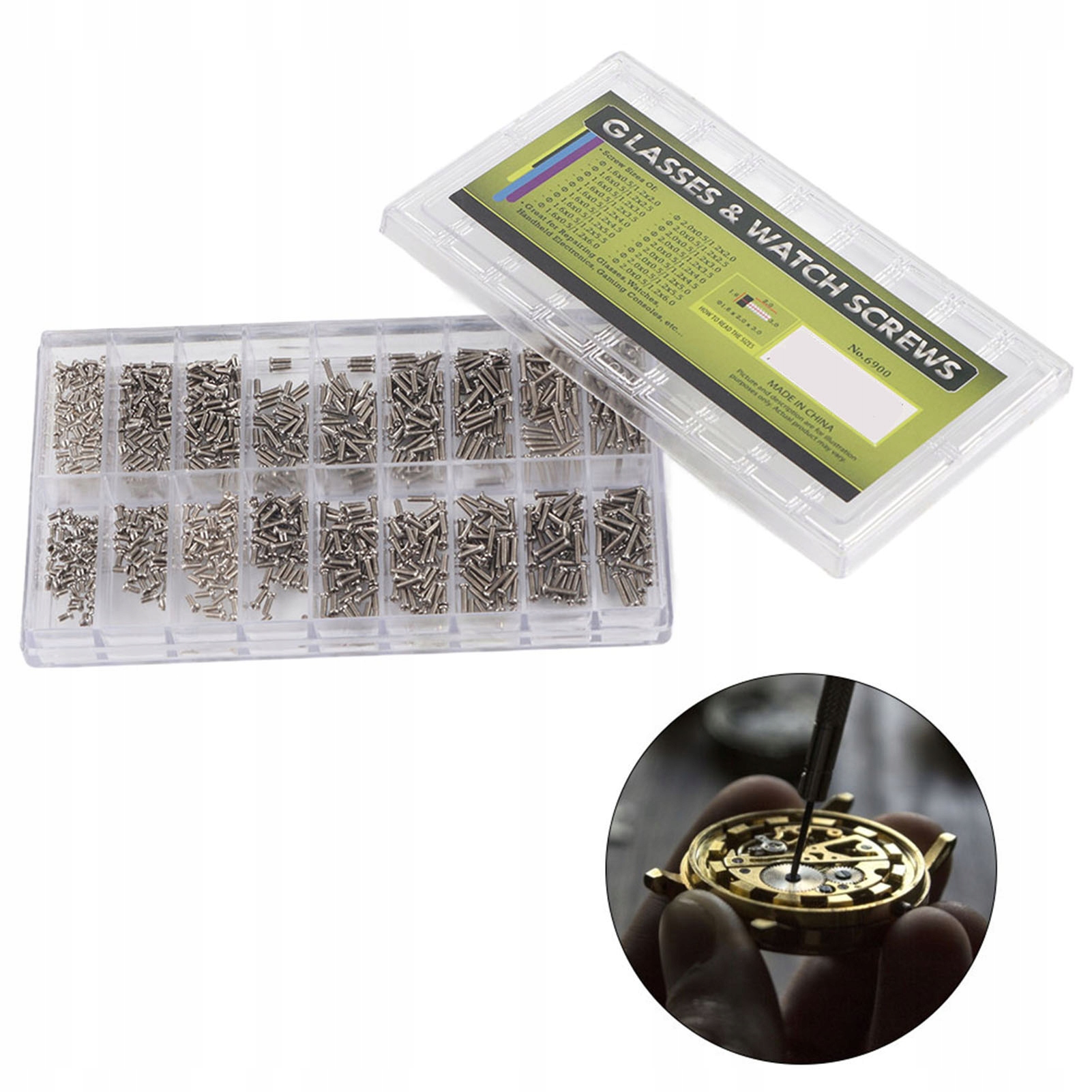 Функция: 1. Мини -набор винтов, в основном используемых для ремонта очков или часов.