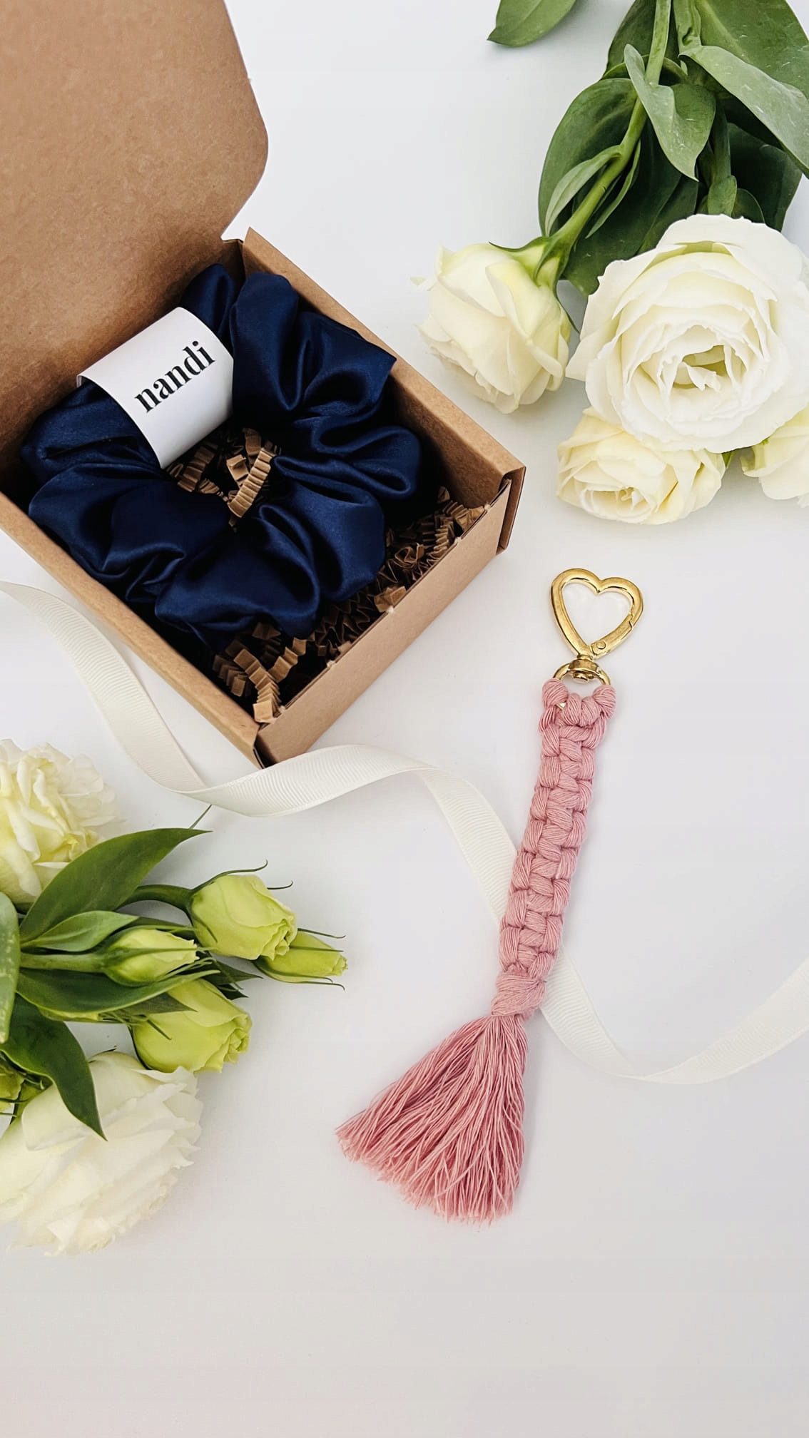 Мини -подарочный набор Scrunchie Satin Key Ring Heart Разные цвета
