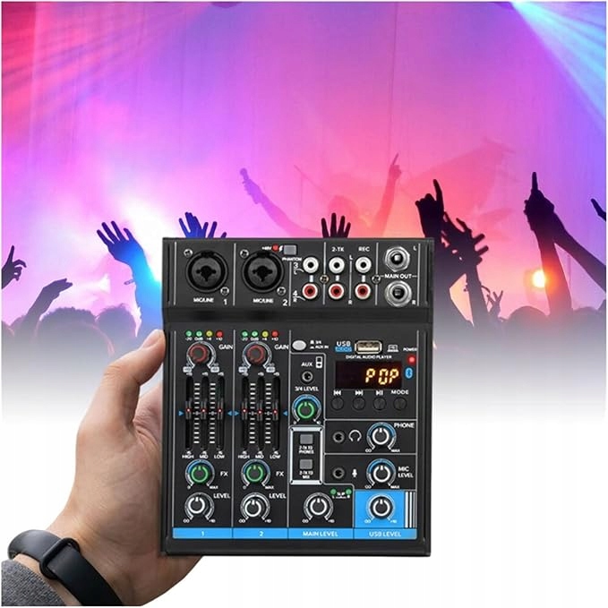 Это многофункциональный 4-канальный аудиомикшер, сочетающий в себе компактный размер и универсальные возможности. Идеально подходит как для новичков, так и для профессионалов, он используется в домашнем производстве музыки, записи, прямых трансляциях и развлечениях. Благодаря встроенному интерфейсу USB и Bluetooth микшер обеспечивает удобную передачу музыки и цифровую запись.