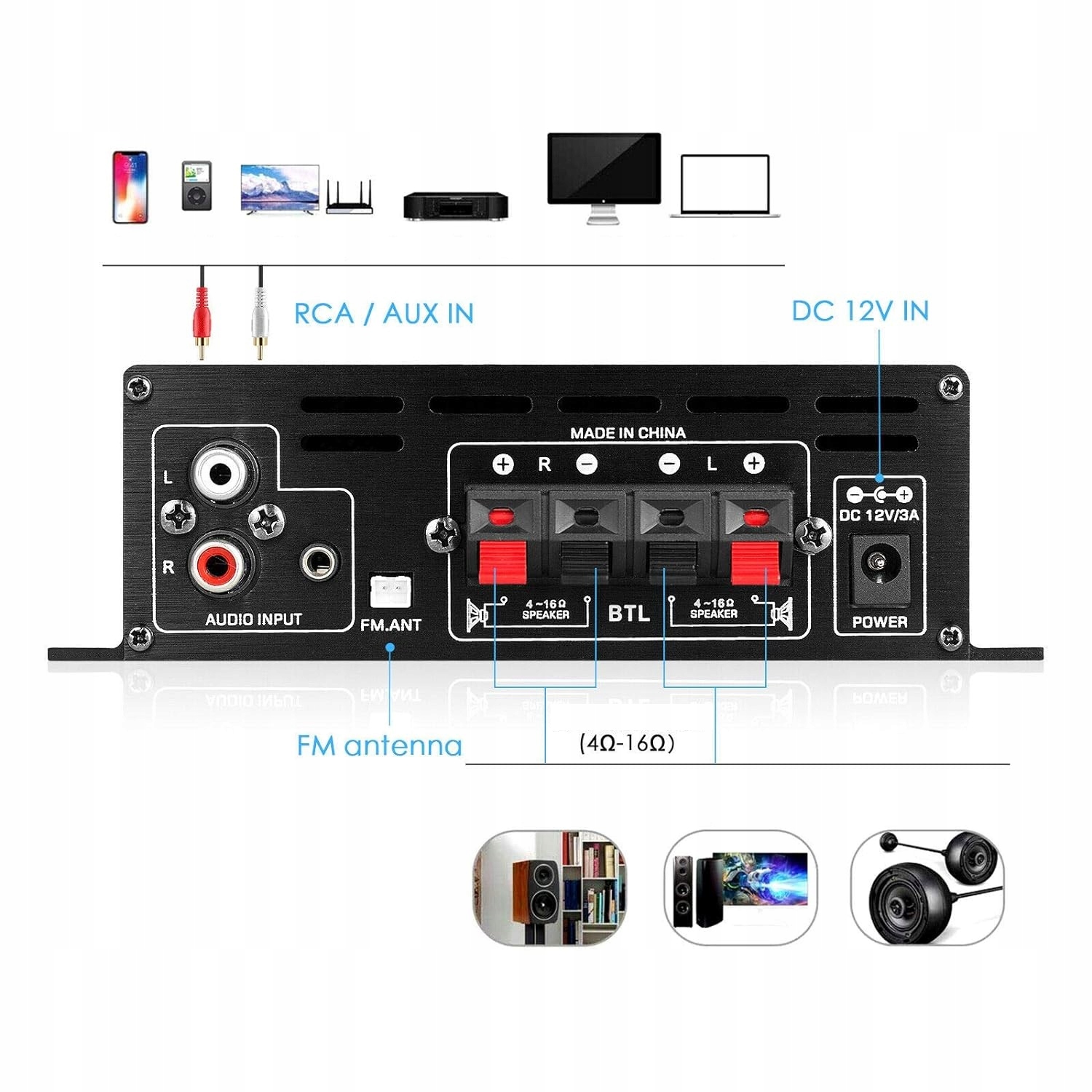 Mini Bluetooth 5.0 wzmacniacz stereo Amplifier odtwarzacz muzyki USB