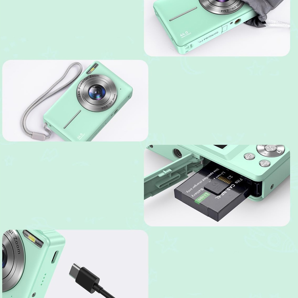 - ✅Эта цифровая камера имеет разрешение изображения HD 1080P и разрешение видео 44MP со встроенным микрофоном и динамиком, что позволяет делать фотографии или видео высокой четкости, запечатлевать прекрасные моменты и запечатлевать незабываемые моменты.