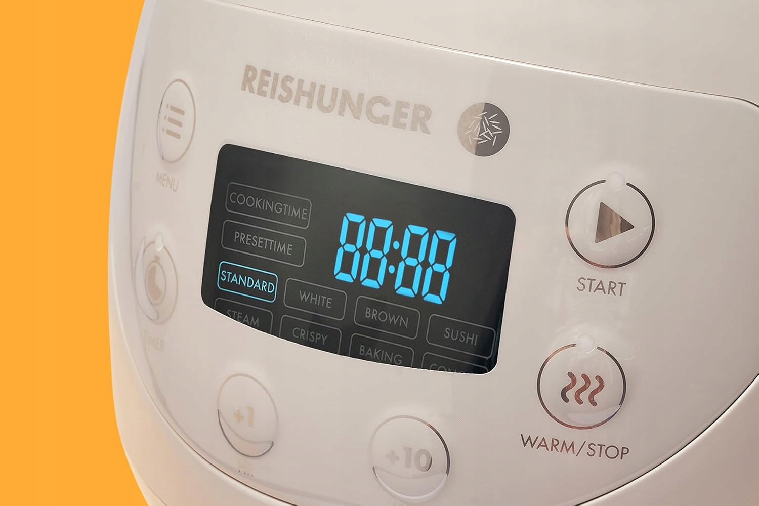Прибор имеет 8 программ, включая режимы для различных сортов риса, а также варианты приготовления на пару, тушения и подогрева. Встроенный таймер позволяет планировать время приготовления, а после окончания работы устройство автоматически переходит в режим поддержания тепла.