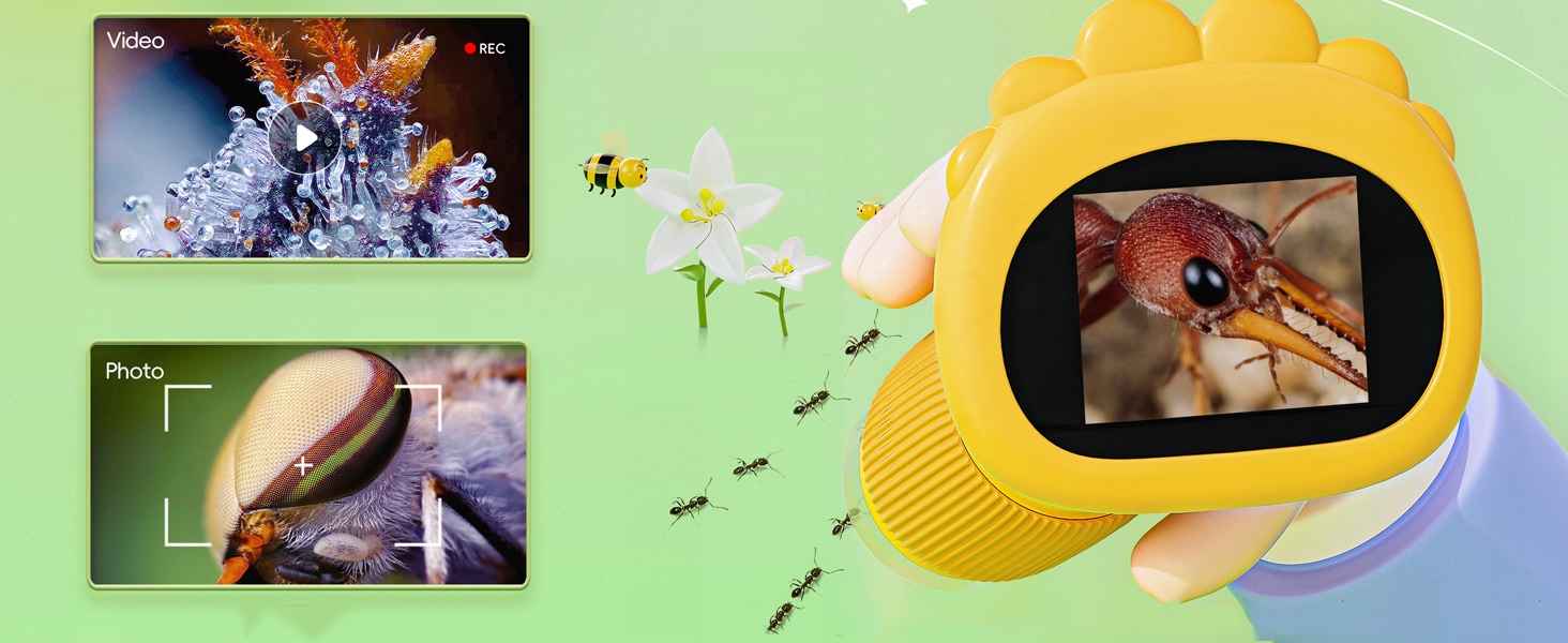 - Детский микроскоп оснащен ярким 2-дюймовым дисплеем высокого разрешения, который позволяет легко исследовать микроскопический мир и обеспечивает четкое и интуитивно понятное наблюдение за объектами.