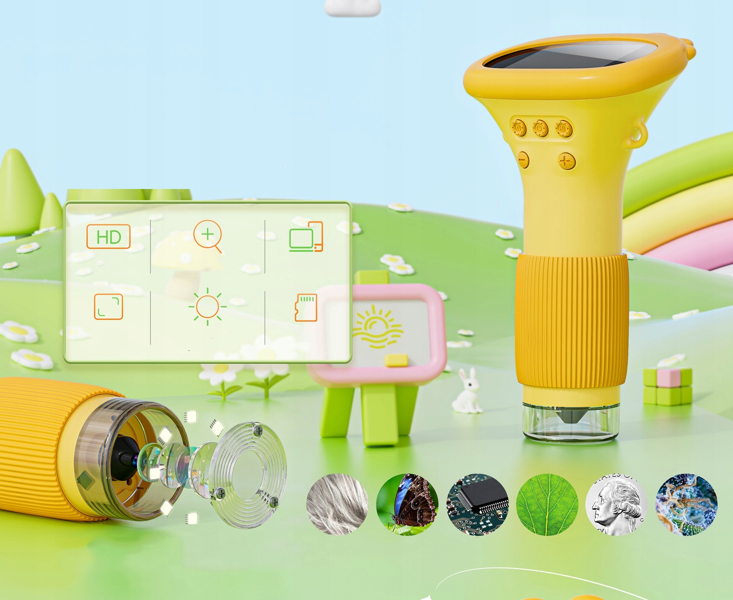- Оснащенный съемным набором для украшения экрана и портативным тросом, он очень удобен, позволяя детям заниматься наукой на свежем воздухе в любое время и в любом месте, не беспокоясь о потере этой очаровательной игрушки.