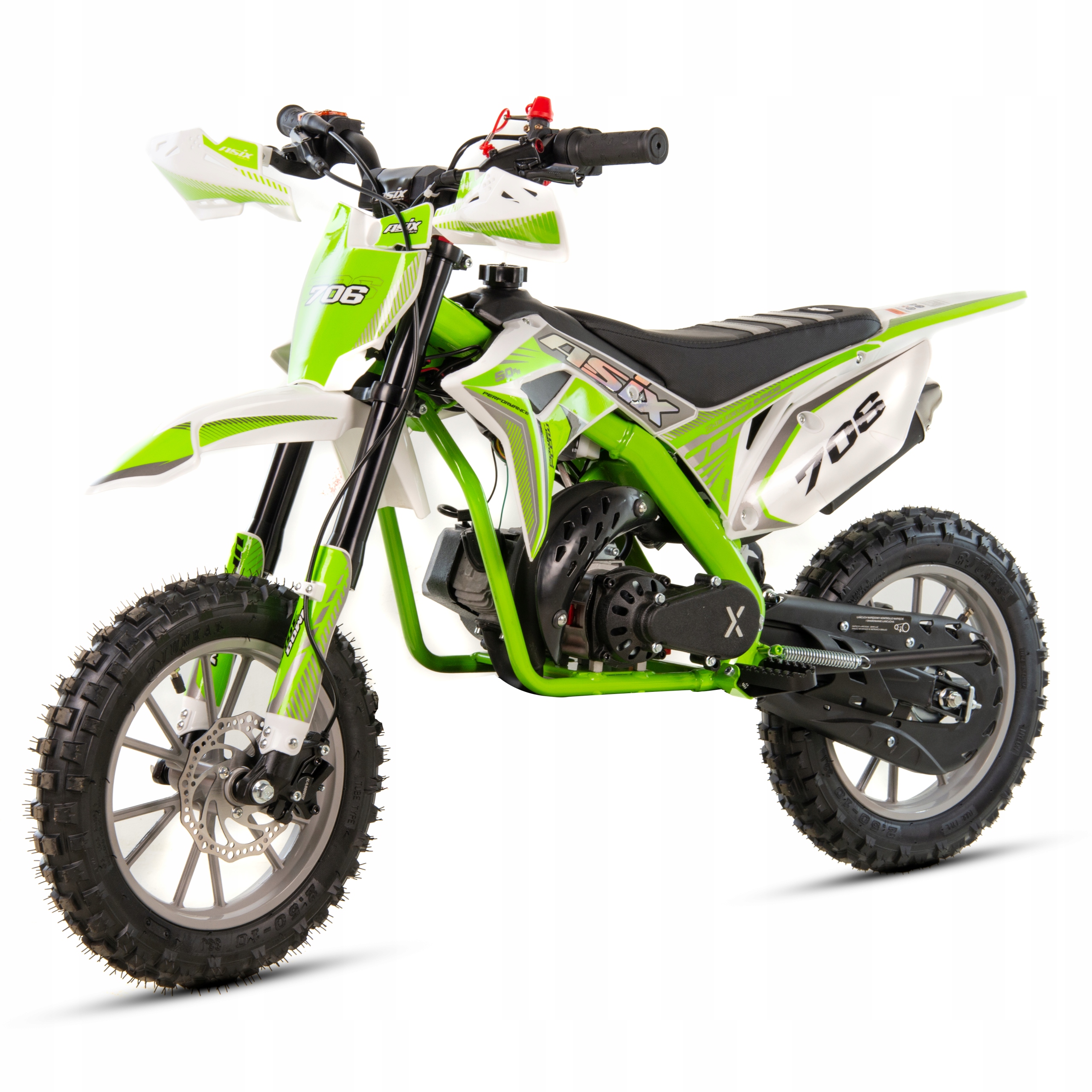 Mini Cross Asix 706-отличный выбор для молодых любителей бездорожья. Оснащенный надежным двигателем 2-туфта с емкостью 50 см3, он обеспечивает плавное вождение благодаря автоматической коробке передач. Алюминиевые 10-дюймовые диски с внедорожными шинами и устойчивости с твердой стальной рамой в любой области. Эта модель имеет легкий электрический стартер, а также усиленная сцепление и эффективные гидравлические дисковые тормоза. Кроме того, современная перевернутая подвеска и удобное сиденье обеспечивают полное управление и удобство во время вождения. Это идеальная модель для первых приключений в трудной местности.