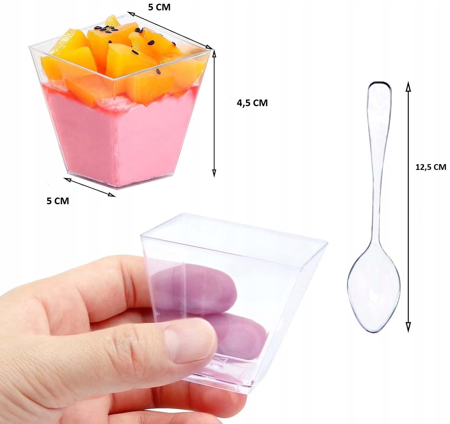 МИНИ ДЕСЕРТНЫЕ ЧАШКИ 60МЛ 50ШТ С ЛОЖКАМИ 12,5СМ 50ШТ КОНТЕЙНЕРЫ ДЛЯ ВЕРИНЫ