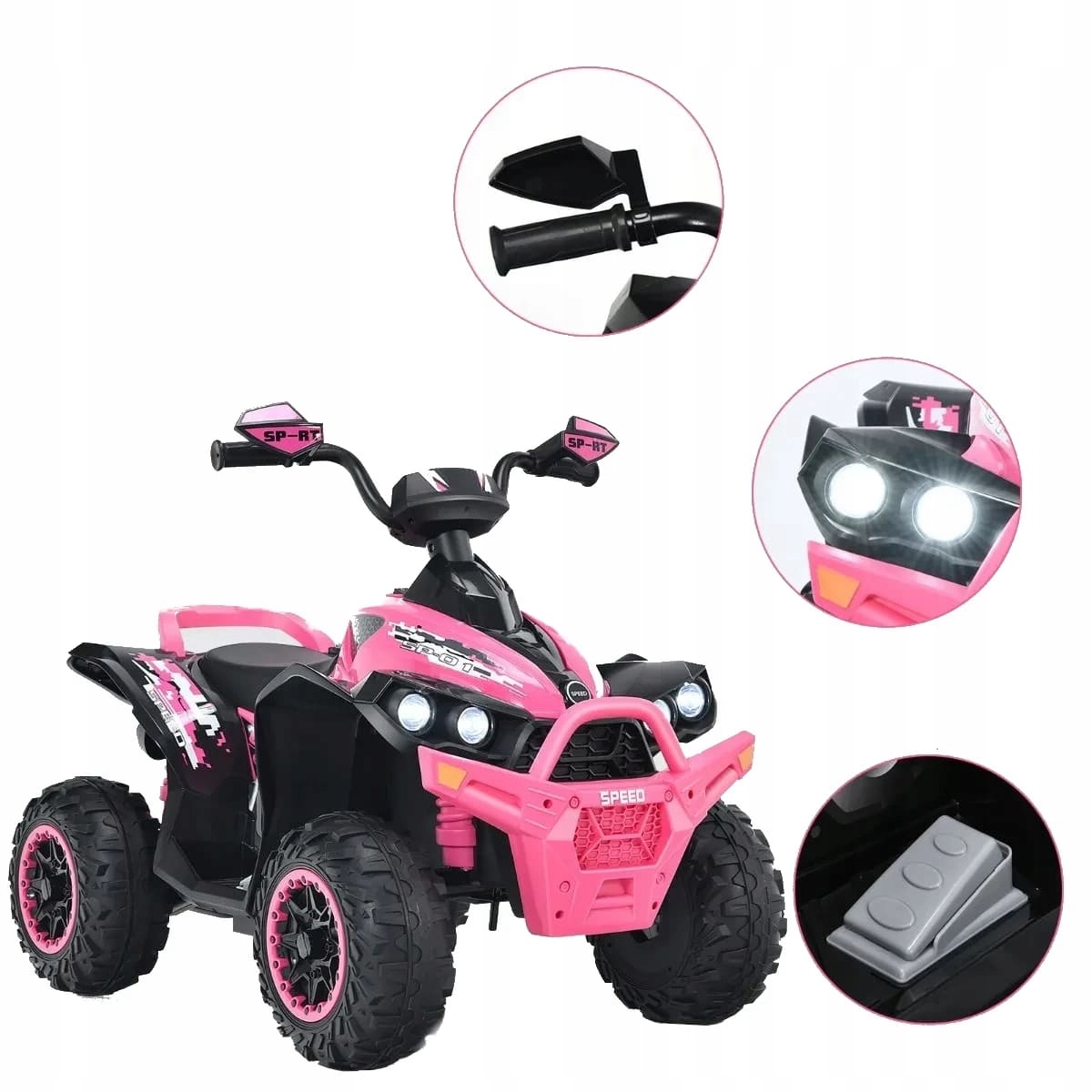 Этот детский квадроцикл, работающий от аккумулятора напряжением 12 В, станет идеальным выбором для малышей в возрасте от 3 до 8 лет. Прочная конструкция из полипропилена и металлических материалов гарантирует максимальную нагрузку до 35 кг. С помощью панели управления дети могут ускоряться, замедляться, включать музыку, звуковой сигнал и светодиодные фонари, что значительно обогащает их впечатления от вождения. Он также оснащен функцией плавного запуска, чтобы предотвратить риск внезапного запуска. Благодаря устойчивым колесам машина может передвигаться как в помещении, так и на улице, по дорогам, траве и песку.