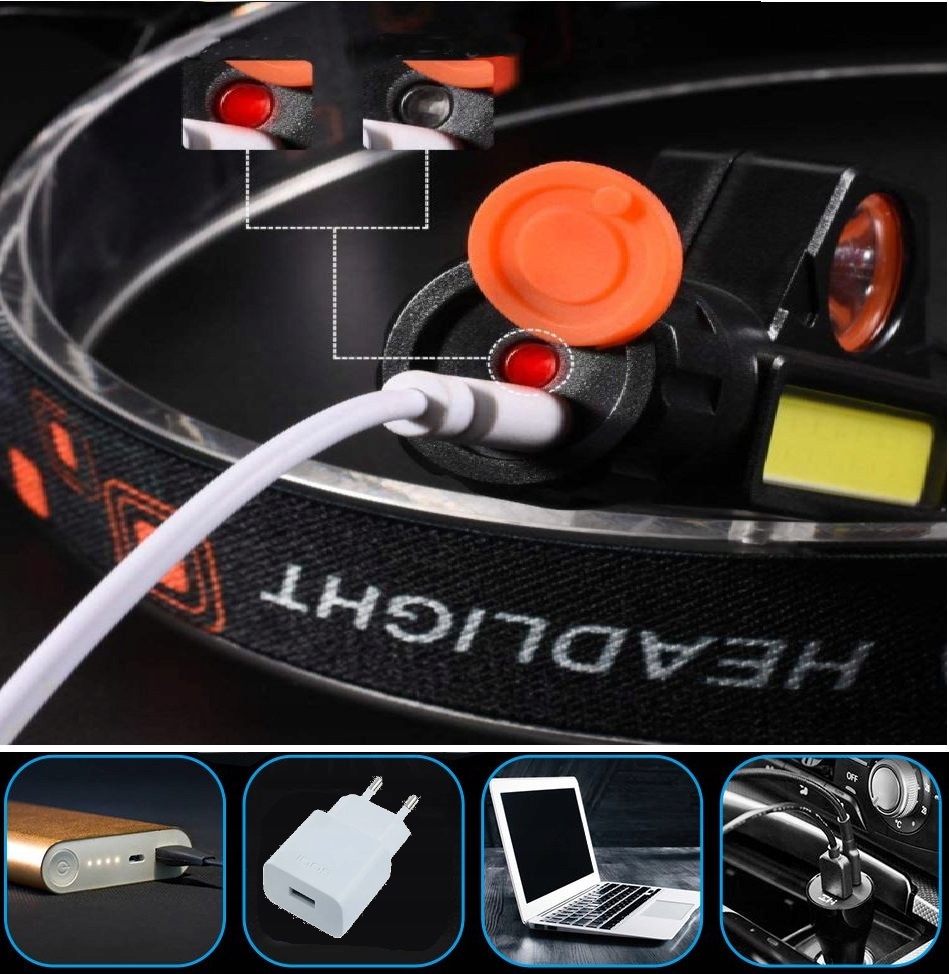 Светодиодный налобный фонарь Тактический COB USB-фонарь, 2 режима, 250 лм, 4 в 1