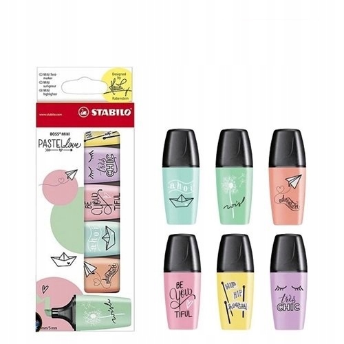МІНІ-ХАЙЛАЙТЕРИ, набір з 6 пастельних КОЛЬОРІВ. STABILO