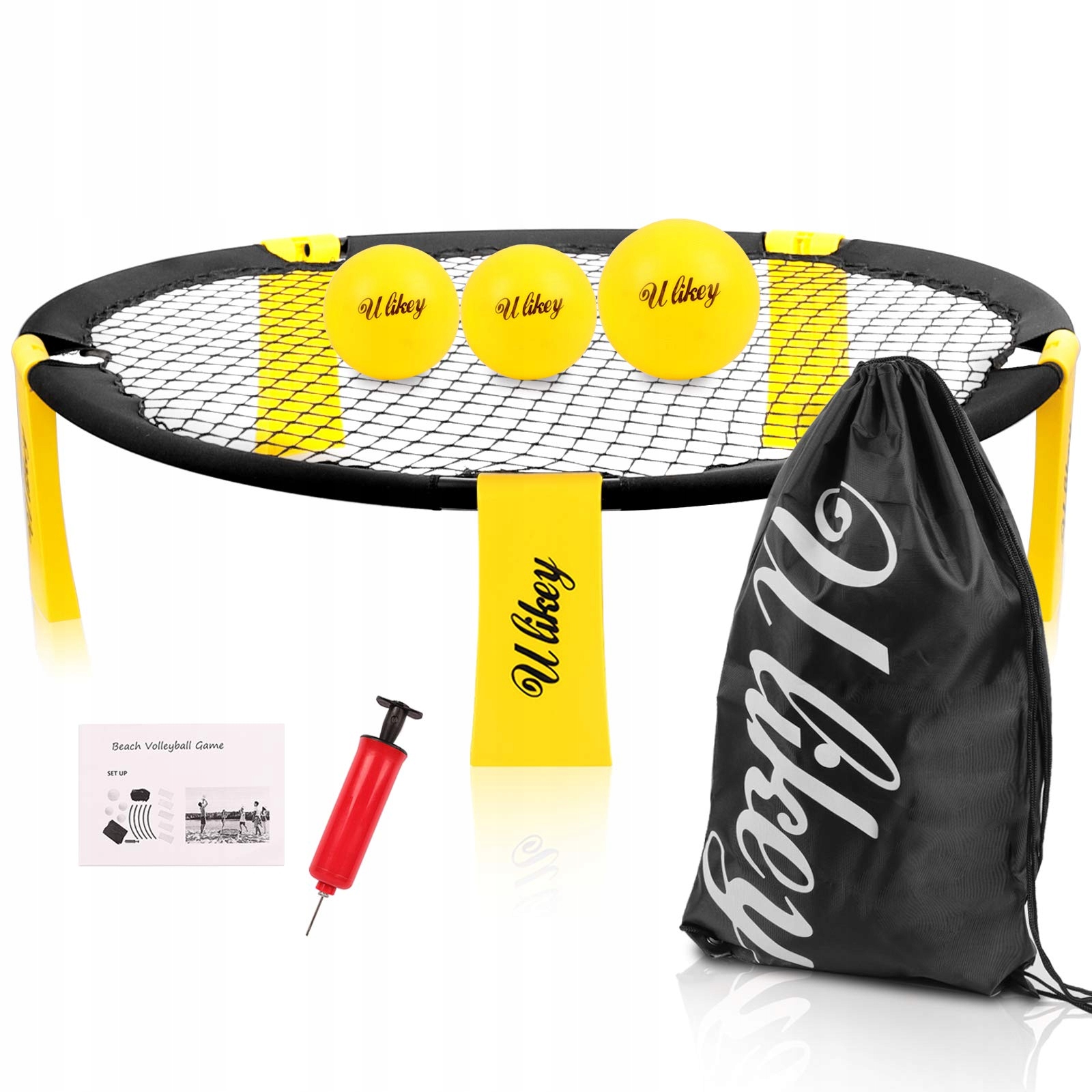 Содержимое упаковки: 3 мяча, 5 ножек, 1 сетка, 1 сумка для транспортировки, 1 шариковый насос, 1 руководство пользователя