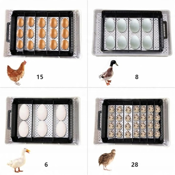 Несколько функций: Отображение температуры, дней инкубации, подсчет времени. С его помощью пользователи могут регулярно наблюдать за оборотом яиц и рассчитывать время инкубации и период вывода, что удобно для пользователей. Источник питания: Платы с цепями 110 В/220 В используют технологию импульсного питания. Он использует технологию линейной мощности. Высокая эффективность преобразования, больше энергосбережения. Качество изготовления: материал ABS с сильным удержанием тепла, термостойкостью, коррозионной стойкостью и длительным сроком службы. Продуманный дизайн: Вставка в рамку для яиц может регулировать расстояние между яйцами, чтобы адаптироваться к инкубации куриных, утиных, гусиных, голубиных, перепелиных и многих других яиц. Функция подсветки яиц: поместите яйца на светодиодную лампу, затем нажмите кнопку, чтобы подсветить яйца, что очень удобно для пользователей, чтобы наблюдать за развитием яиц.