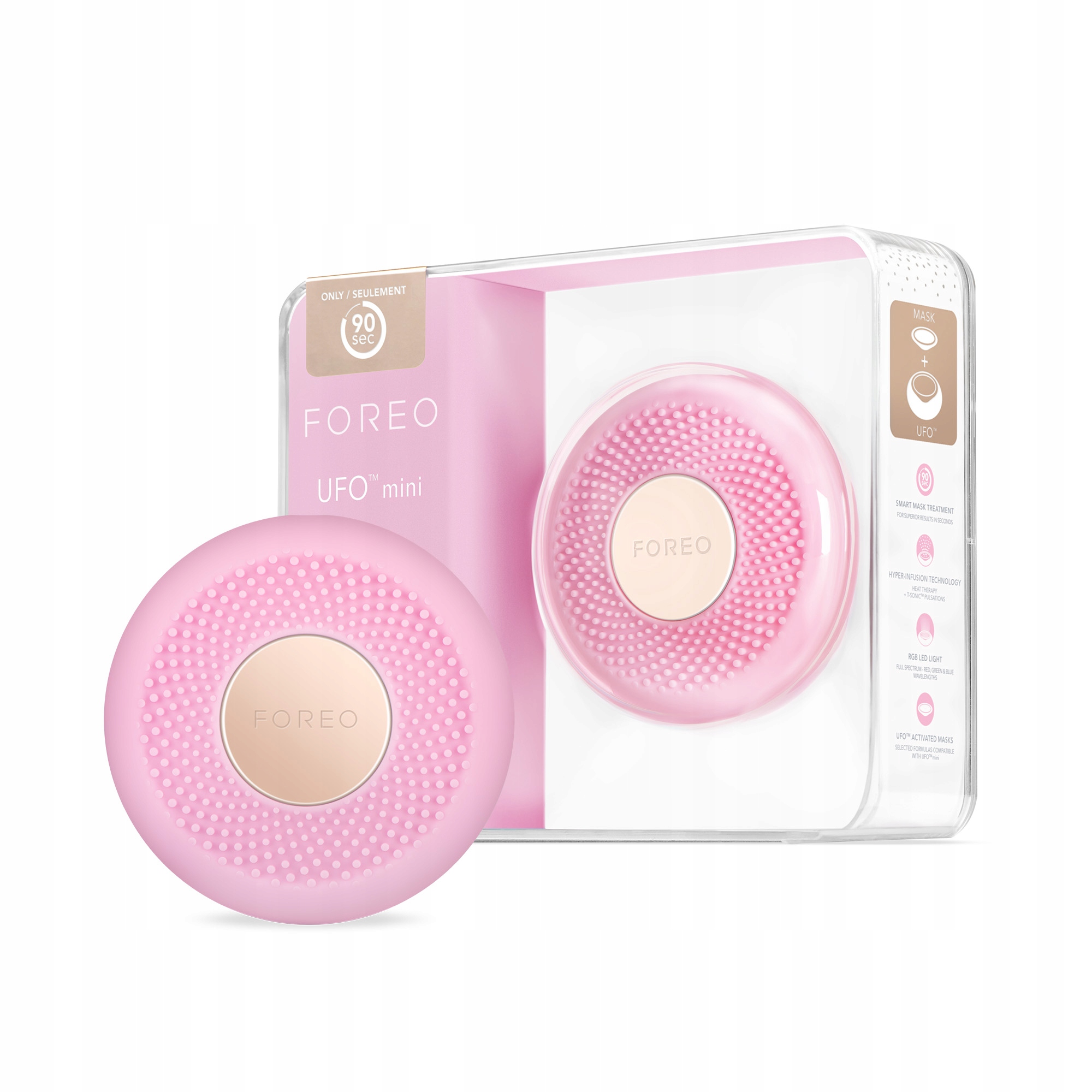 • В комплект входит UFO™ mini, 1 маска Make My Day, «Краткое руководство», базовое руководство пользователя, зарядное устройство USB, акриловая подставка. • UFO™ работает с приложением FOREO For You, доступным для устройств Android и iOS.