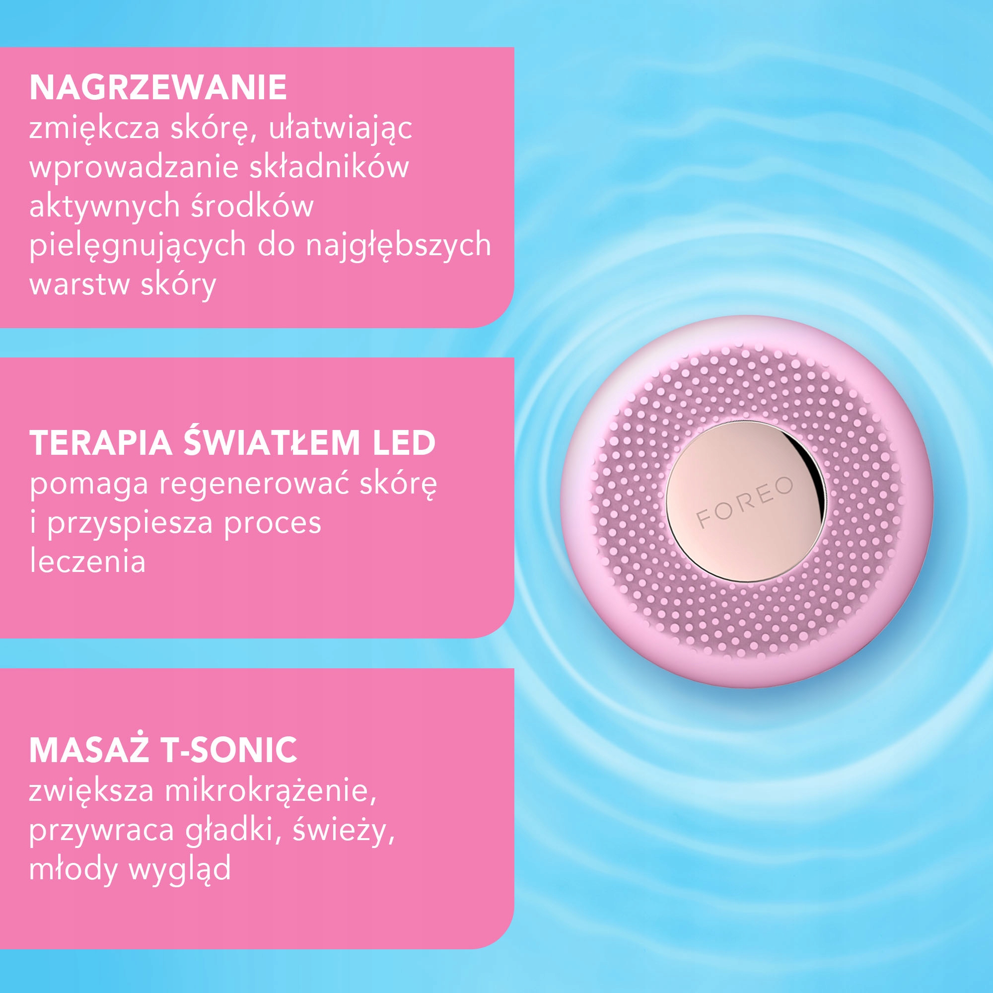 Осторожно перемещайте UFO mini по лицу круговыми движениями, пока устройство не выключится. Снимите маску и промойте UFO mini под проточной водой.