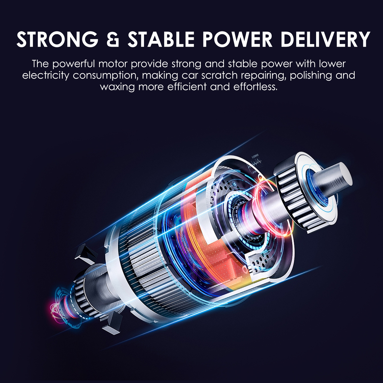 - [Мощная и стабильная подача мощности] Мощный двигатель обеспечивает мощную и стабильную мощность при меньшем потреблении электроэнергии, что делает ремонт царапин, полировку и нанесение воска более эффективным и простым.