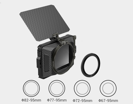 Мини-матовая коробка предназначена для использования с зеркальными и беззеркальными камерами. Предотвращает солнечное излучение и блики, обеспечивая более четкое изображение на экране. Переключатель зажима работает с переходными кольцами различных размеров. Его также можно прикрепить непосредственно к объективу Φ95 мм. Переходное кольцо подходит для CPL, ND и других круглых фильтров диаметром до 92,5 мм. Быстрая установка с использованием фильтровального лотка 4 x 5,65 дюйма / 4 x 4 дюйма толщиной 4 мм. Удобный в хранении лоток для фильтра можно быстро прикрепить к матовому ящику с помощью зажима НАТО. Поддерживает одновременно несколько сменных фильтров 4 x 5,65 дюйма/4 x 4 дюйма диаметром 4 мм. Это защищает фильтры от (случайного) падения и предотвращает появление царапин и отпечатков пальцев при замене сменных фильтров.