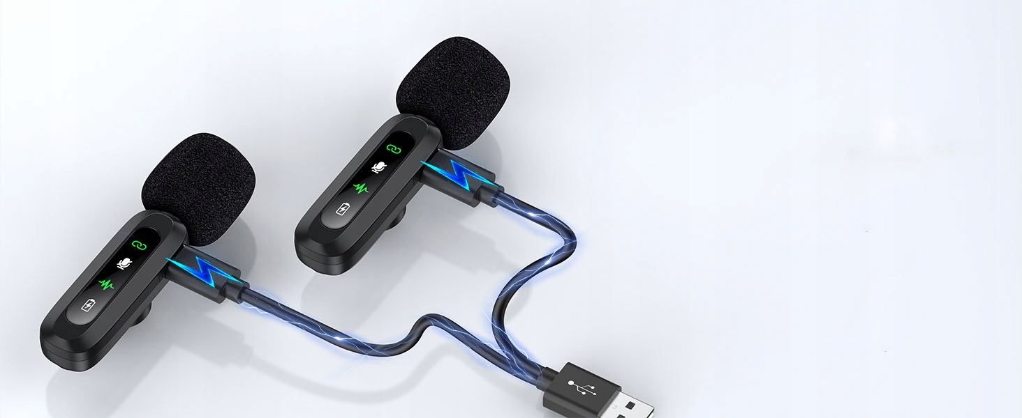 ✔ Быстрая зарядка — входящие в комплект 1–2 зарядных кабеля позволяют заряжать оба передатчика одновременно