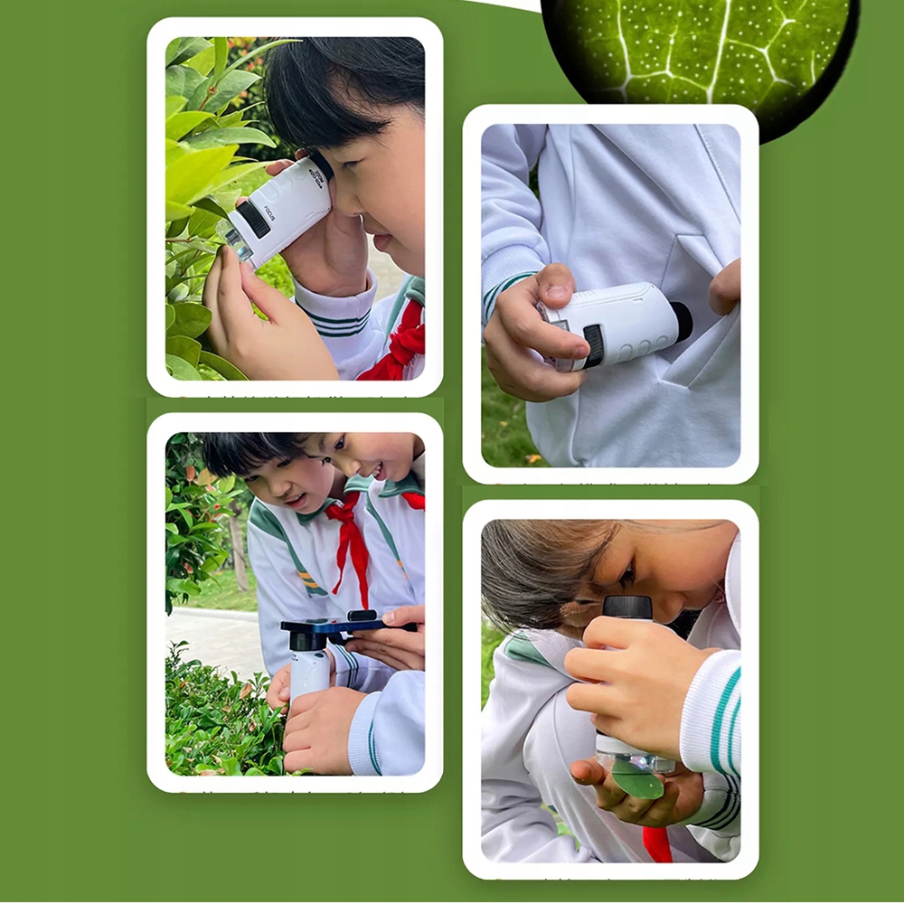 Миниатюрный карманный микроскоп изготовлен из безопасного и прочного материала АБС, что гарантирует надежность, без запаха и сопротивление трещинах. Это особенно подходит для детей, обеспечивая безопасное и приятное обучение.