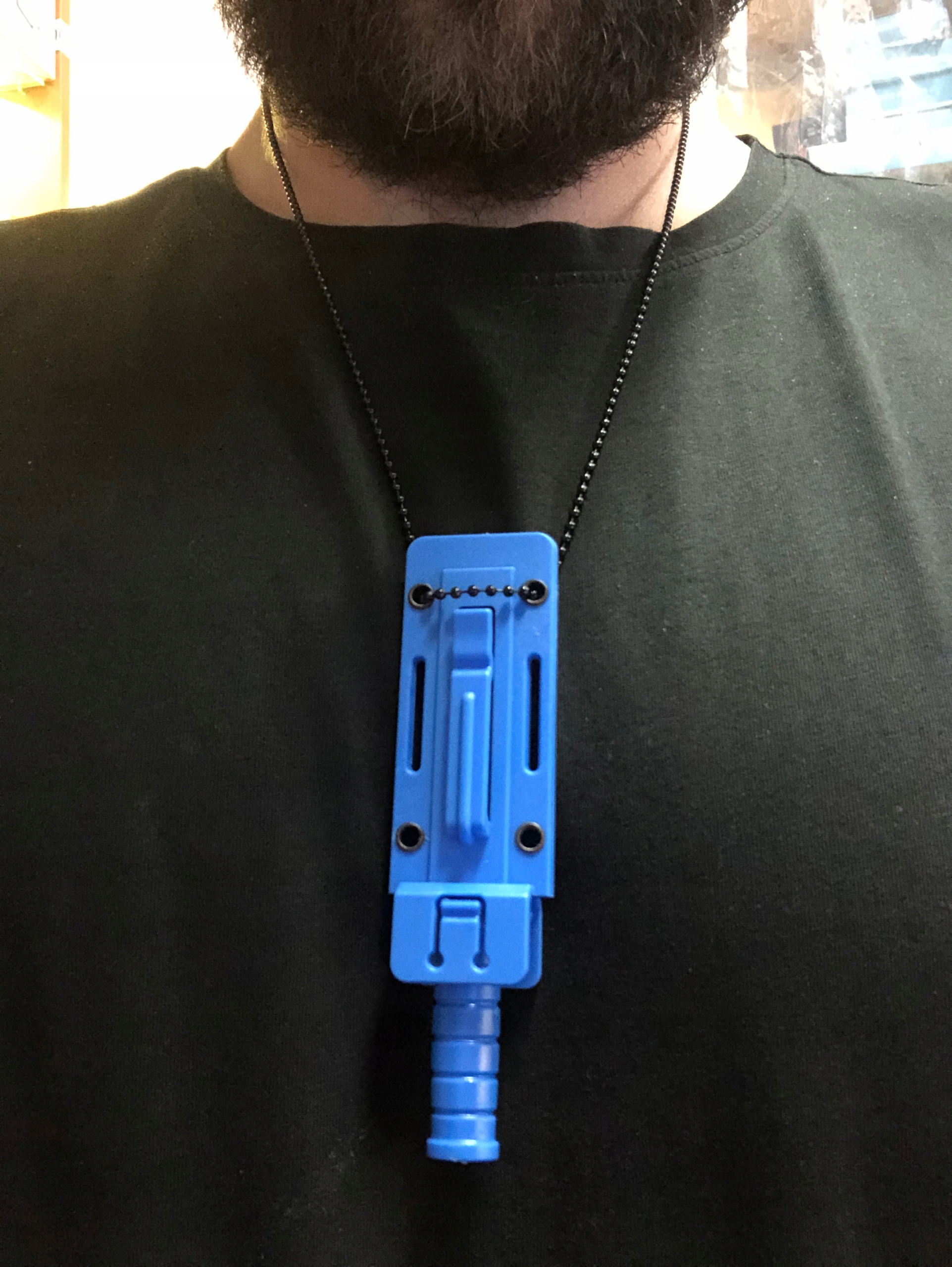 - Можно использовать как ожерелье, а благодаря клипсе на ножнах прикрепить к брюкам или ремню.