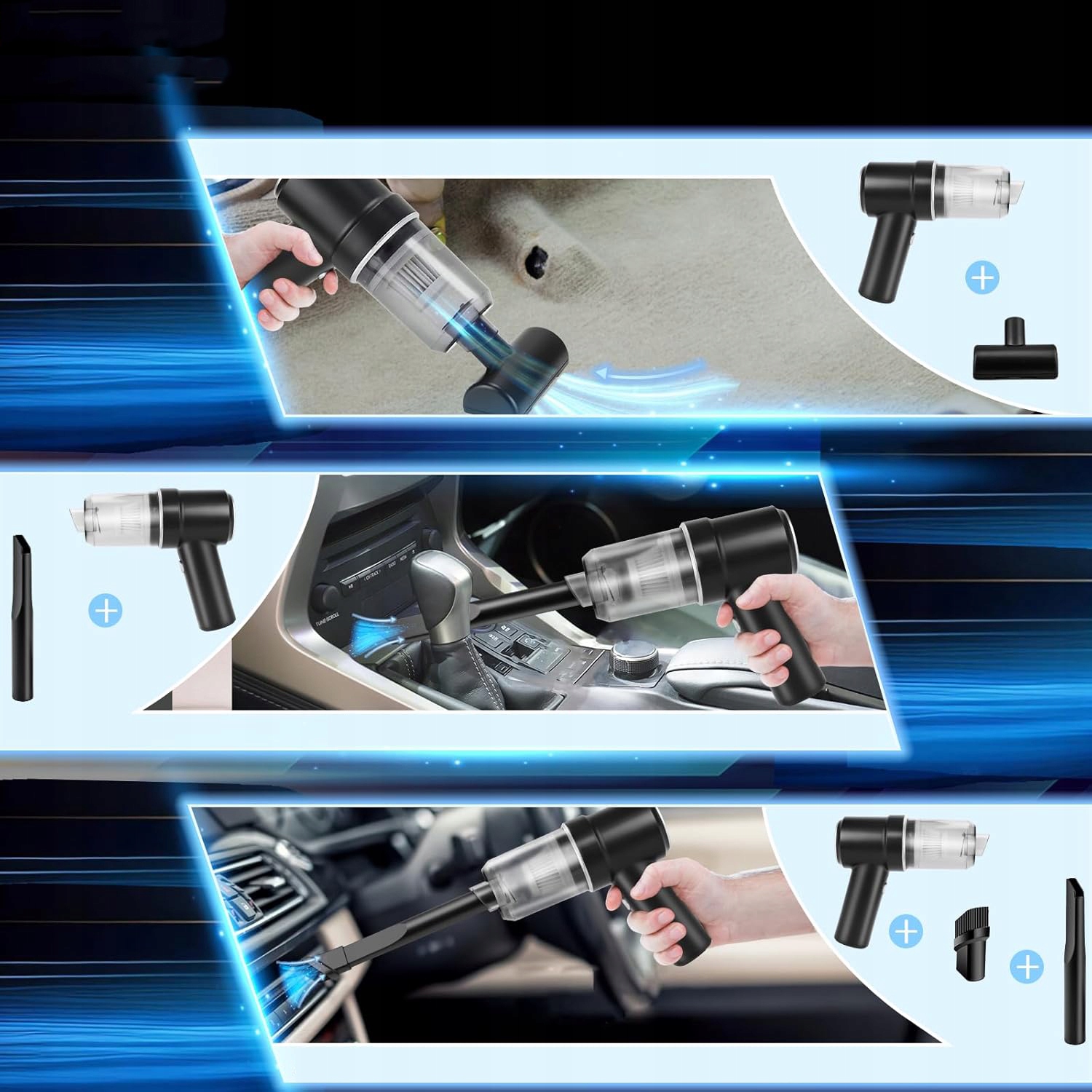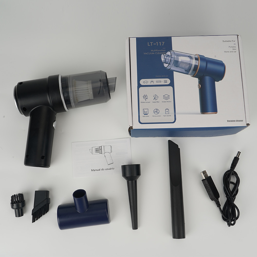 - Мини-аккумуляторный пылесос с различными насадками и насадками-щетками для уборки пыли. Вакуумное всасывание, вакуумная выдувка, вакуумное сжатие и надувание в одном устройстве для удовлетворения различных потребностей в уборке.