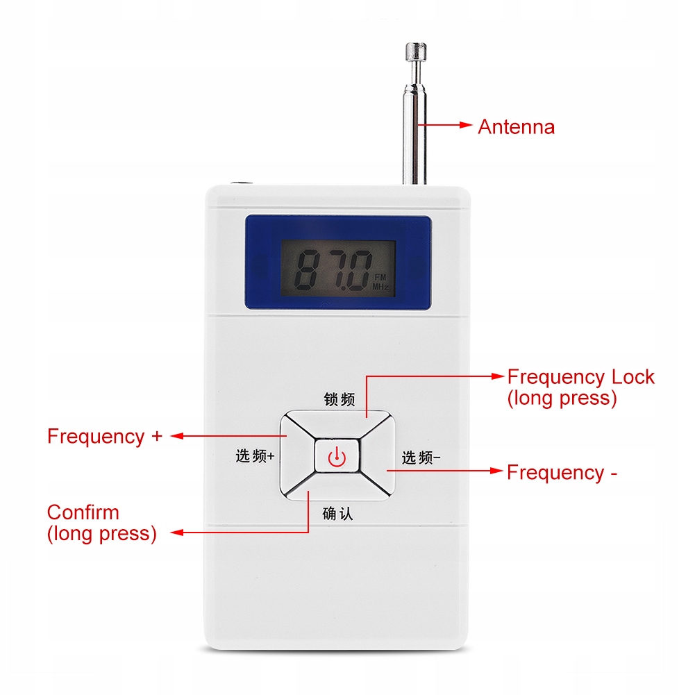 Особенности: ✅ Полнодиапазонная работа, частота в диапазоне 70–108 МГц может быть свободно установлена.