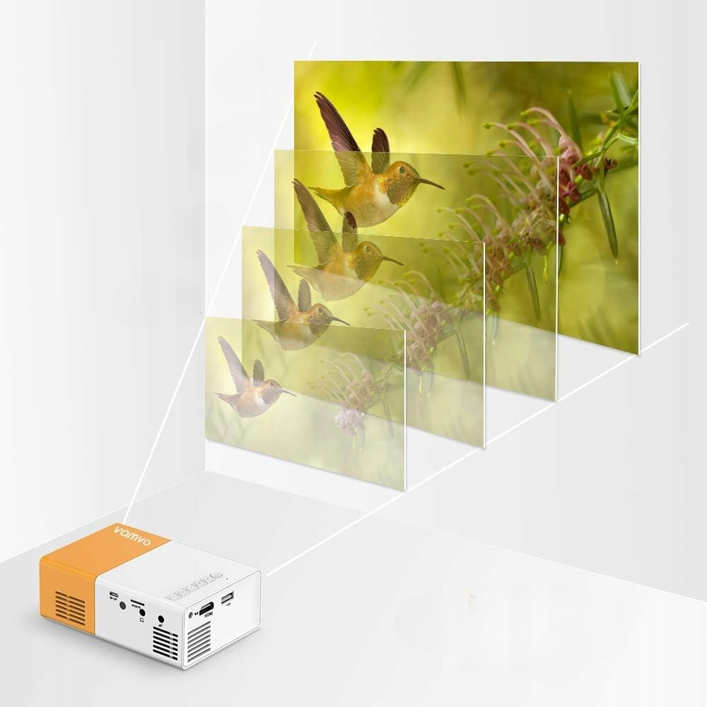 - Многие порты: малый проектор VAMVO поддерживает HDMI/USB / AV/ Audio Out 3,5 мм, совместим с Fire Stick, PS4, внешней USB -памяти, смартфонов, планшетов и ноутбуков (для подключения интеллектуальных устройств к проектору вам нужен адаптер/ кабель HDMI), соответствует многим требованиям