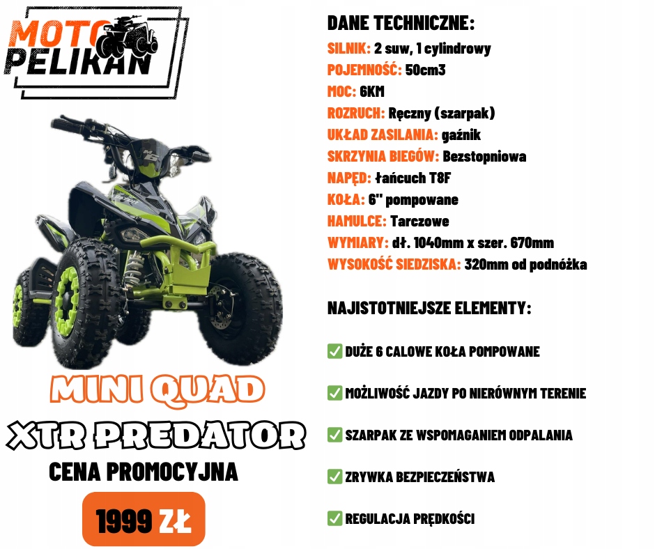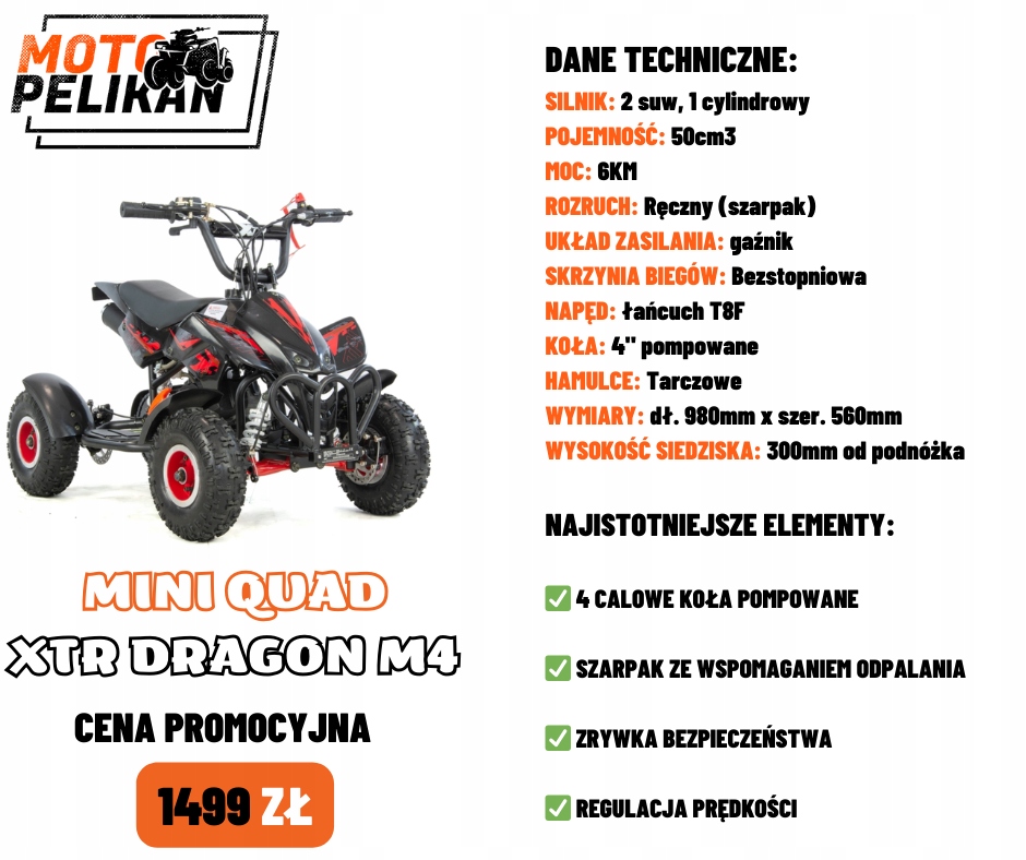 MINI QUAD SPALINOWY 50cc DLA DZIECI DOSTAWA RATY