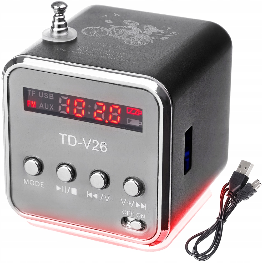 Мини-радио заменяет несколько устройств. Помимо тюнера, устройство оснащено mp3-плеером, портами miniUSB и USB, а также слотом для карт памяти microSD (TF). Также имеется вход для наушников 3.5. Мини-разъем мм можно использовать в качестве динамика для других устройств, например смартфона. Устройство изготовлено из алюминия и оснащено встроенным аккумулятором. Оснащено ЖК-дисплеем, на котором отображается текущий источник воспроизведения, время песни, радио. частота и т. д. p>
