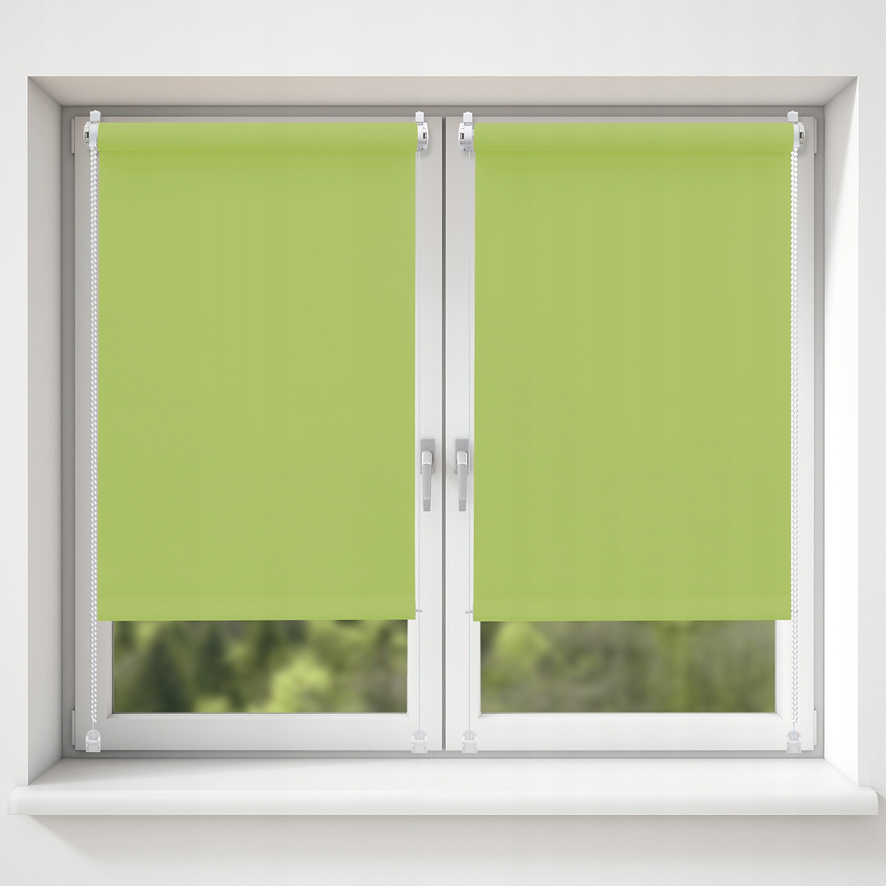 Каждая рулонная штора оснащена так называемым боковое натяжение, при котором используются две веревки, расположенные по бокам ткани и натянутые между верхней и нижней частями оконной створки, чтобы удерживать рулонную штору близко к стеклу, даже когда окно открыто. Благодаря боковому натяжению рулонная штора идеально скатывается на трубу ролика.
